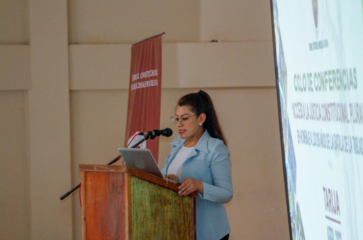 La Magistrada del Tribunal Constitucional Plurinacional (TCP), MSc. Julia Elizabeth Cornejo Gallardo, electa por el departamento de Tarija, facilitó la Conferencia “Justicia Constitucional Plural”, en la ciudad de Caraparí del mismo municipio en la Región del Gran Chaco en el Departamento de Tarija. Este evento se efectuó en coordinación con el Gobierno Municipal en la persona del Honorable Alcalde, Dr. Ermas Pérez Villalba.