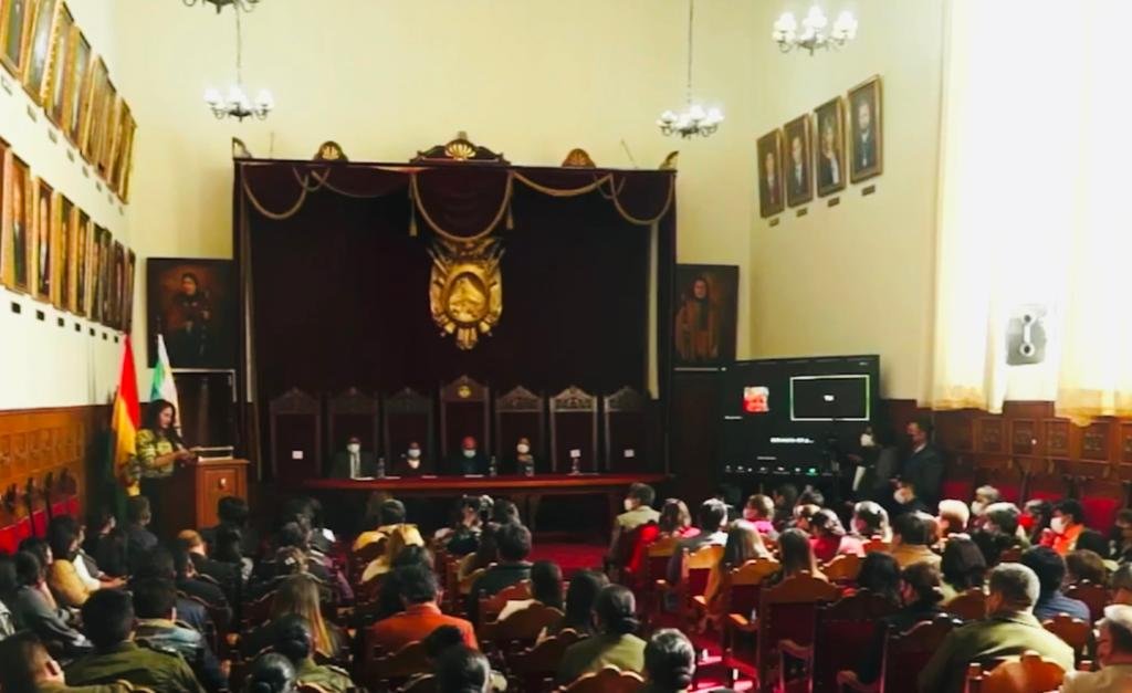 El señalado acto contó con la presencia de la Defensora del Pueblo, Dra. Nadia Cruz Tarifa; del Presidente del Tribunal Supremo de Justicia, Dr. Ricardo Torres Echalar; Presidente del Consejo de la Magistratura, MSc. Marvin Arsenio Molina Casanova y Decana de esa institución, Dra. Mirtha Gaby Meneses Gómez; del Delegado Defensorial Departamental de Chuquisaca, Edwin Martínez; Representante de ONU Mujeres, Nidya Pesántez Calle y de la Directora de la Fundación Voces Libres, Mercedes Cortez Álvarez, entre otros invitados especiales.