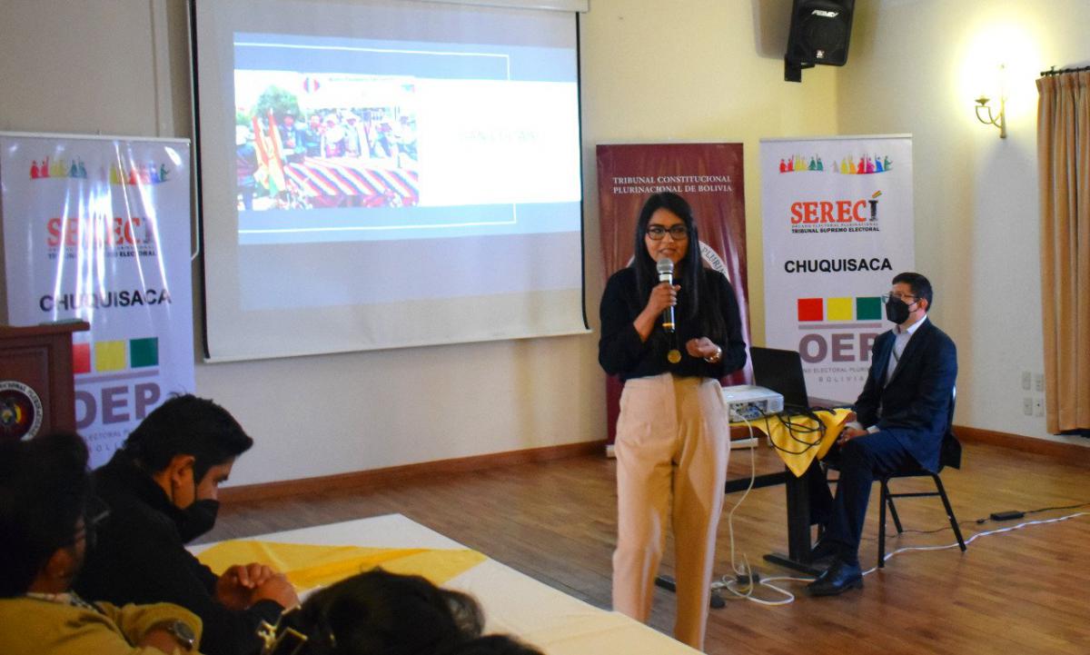 En el diálogo calificado por sus organizadores como exitoso, participó también el Director Nacional del Servicio Intercultural de Fortalecimiento Democrático del Tribunal Supremo Electoral, Lic. Víctor Villalta Hinojosa, junto al Jefe de Sección, Observación, Acompañamiento y Supervisión, Lic. Elías Dardo Huanca Castillo, quienes hablaron sobre “La participación y representación política de las NyPIOC, una mirada crítica al carácter oral y escrito de sus normas internas”.