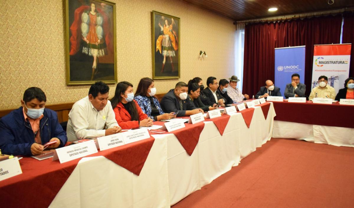 Formaron parte también de esta actividad, el Viceministro de Justicia y Derechos Fundamentales, Cesar Siles; la Presidenta y diputados de la Comisión de Justicia Plural, Ministerio Público y Defensa legal del Estado; la Presidenta de la Cámara de Senadores de la Comisión de Justicia Plural, Virginia Velasco; el Presidente de la Comisión de Constitución, Legislación y Sistema Electoral, Rubén Gutiérrez; el Presidente de la Comisión de Constitución, Legislación y Sistema Electoral, Rubén Gutiérrez; el Presidente del Tribunal Supremo de Justicia, Ricardo Torres; el Presidente del Consejo de la Magistratura, Marvin Molina junto a la Decana, Mirtha Meneses y el equipo técnico de las instituciones invitadas.