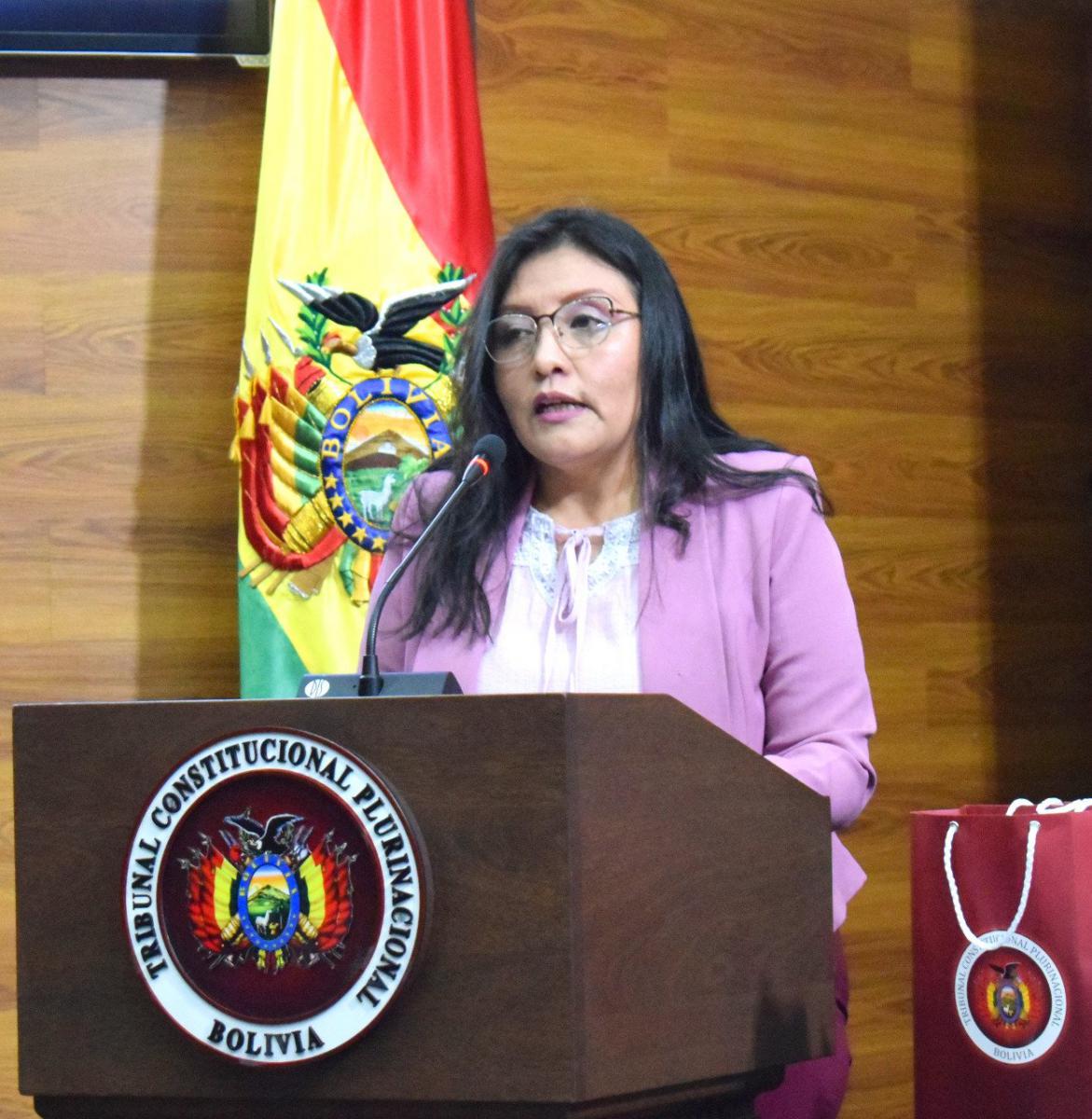 Por su parte, la Magistrada electa por el departamento de Oruro, MSc. Georgina Amusquivar Moller, señaló que, “considera propicia la suscripción del convenio que permite al Tribunal efectuar otras labores, no solo de emisión de resoluciones constitucionales, sino también de contribuir en el área pedagógica, de discusión e investigación en temas que hacen a la justicia constitucional y de gestión autonómica municipal”.
