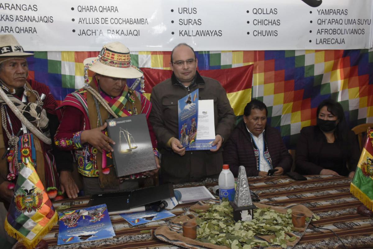 Formaron parte de este importante evento, la Magistrada electa por el departamento de La Paz, MSc. Brigida Celia Vargas Barañado; el Magistrado electo por el departamento de Potosí, Dr. Petronilo Flores Condori; el Jiliri Apu Mallku, Ramiro Jorge Cucho del CONAMAQ, entre otras autoridades de la Jurisdicción Indígena Originaria Campesina.