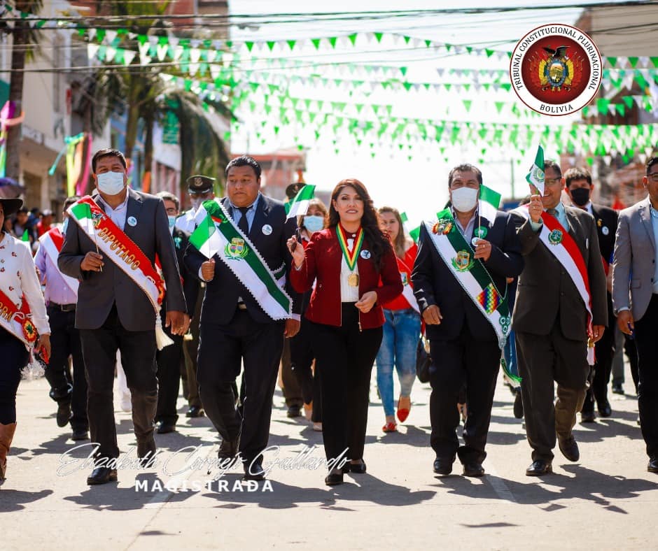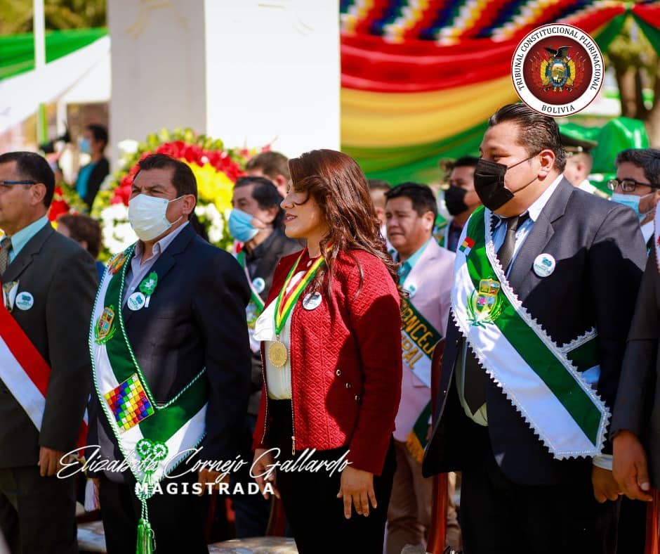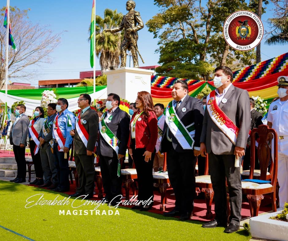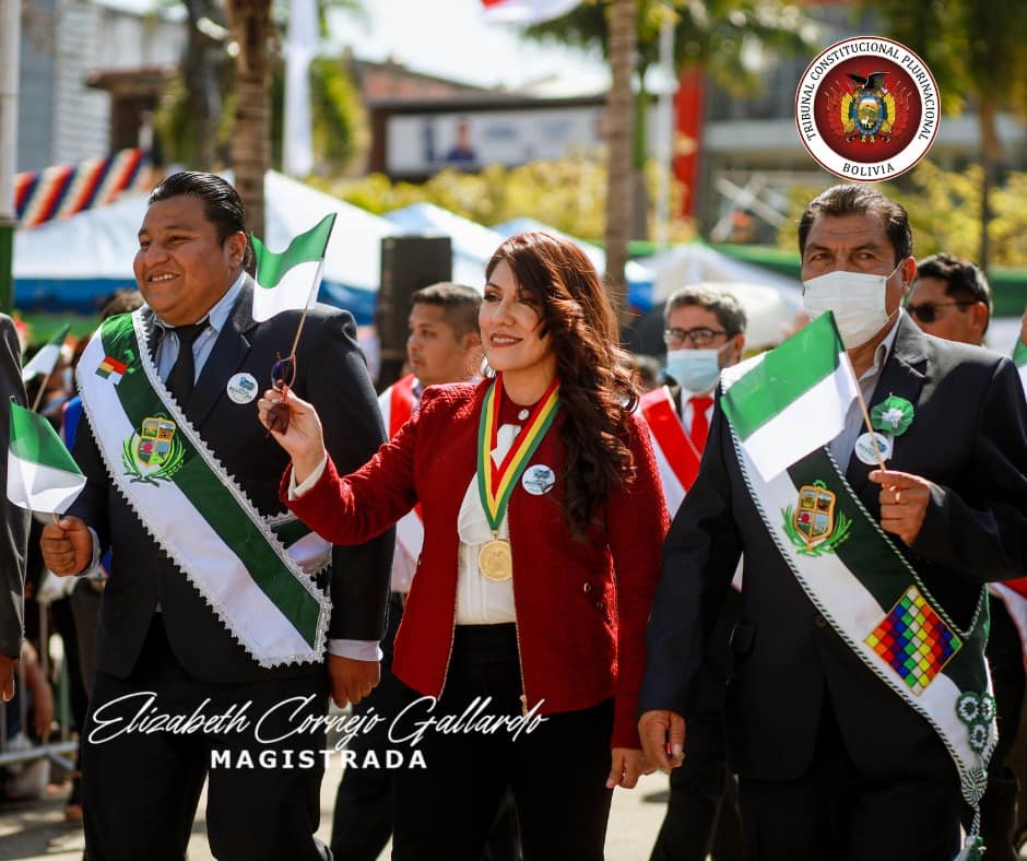 La MSc. Elizabeth Cornejo Gallardo, Magistrada del Tribunal Constitucional Plurinacional participó junto a las autoridades locales, departamentales y nacionales, de los actos protocolares con motivo de la conmemoración del Centenario nacimiento de la ciudad de Bermejo, lugar donde se descubrió el petróleo en Bolivia. Eventos como la ofrenda floral y el desfile cívico militar, en los que también las instituciones públicas y privadas como la población toda se reunió para rendir importante homenaje a la ciudad de la zona fronteriza con la hermana República Argentina, triángulo sur de la patria y bastión de soberanía.