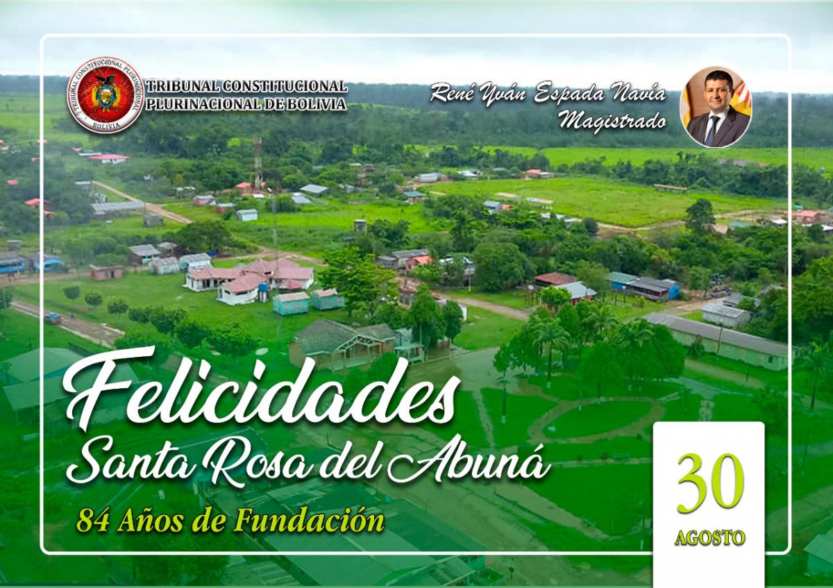 A invitación de las autoridades municipales, el Magistrado del TCP, el día 30 de agosto, fue partícipe de las diferentes actividades protocolares realizadas en Santa Rosa del Abuná, denominada la capital amazónica del asaí, asistiendo también a la fiesta patronal en devoción a la “Virgen Santa Rosa de Lima”.