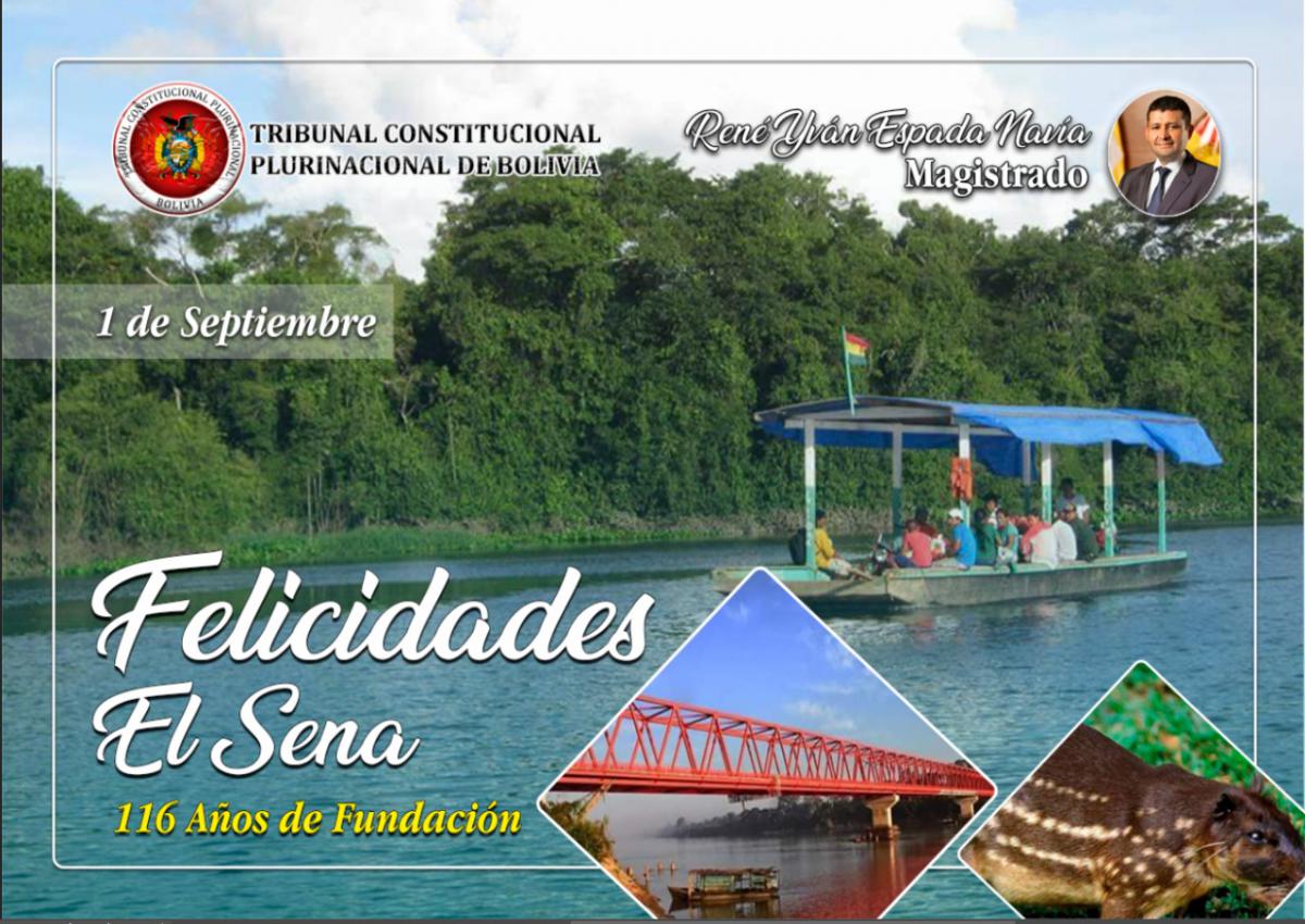 El Magistrado del Tribunal Constitucional Plurinacional (TCP), electo por el departamento de Pando, René Yván Espada Navía, participó de los actos cívicos realizados en conmemoración de los 84 años de fundación del municipio de Santa Rosa del Abuná y 116 aniversario del Sena.