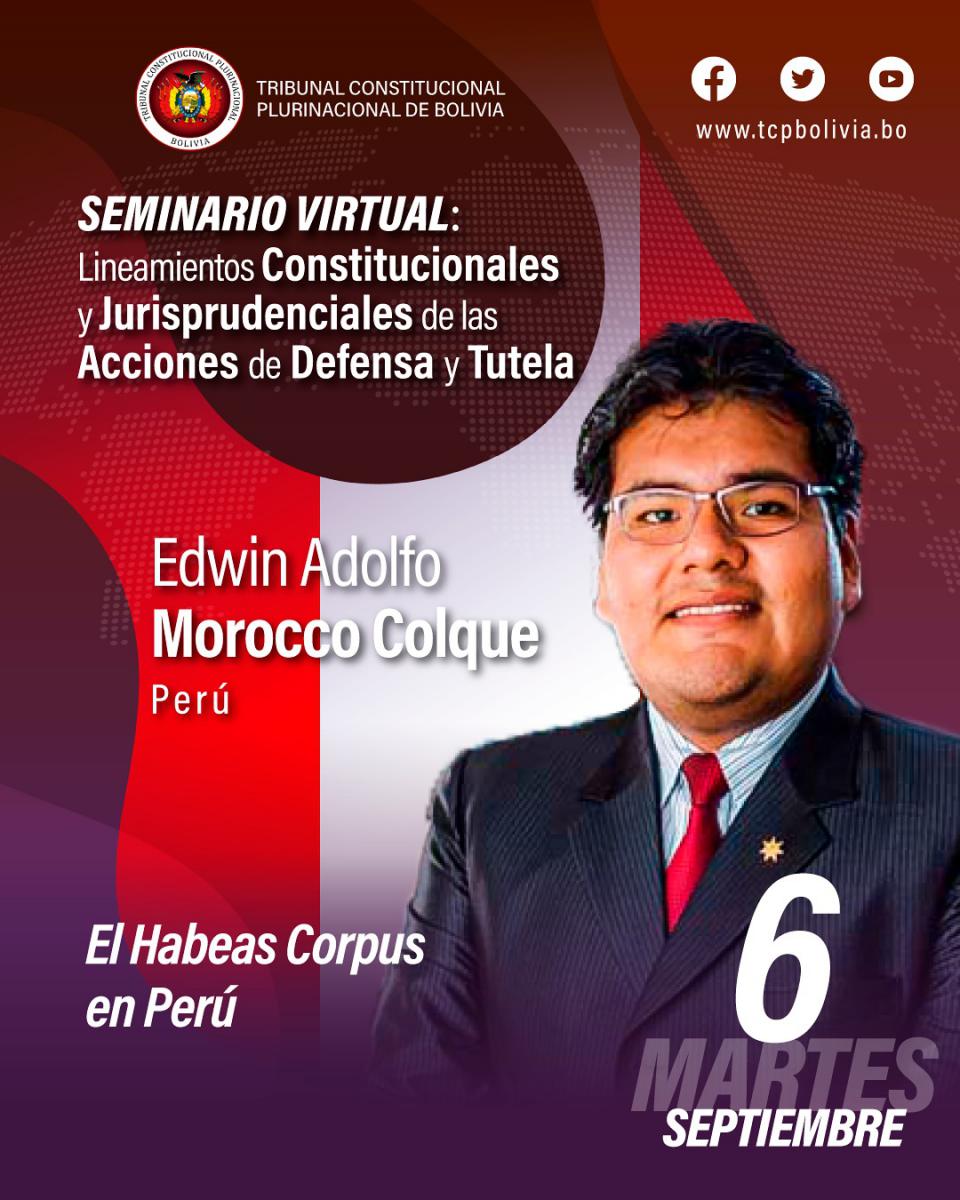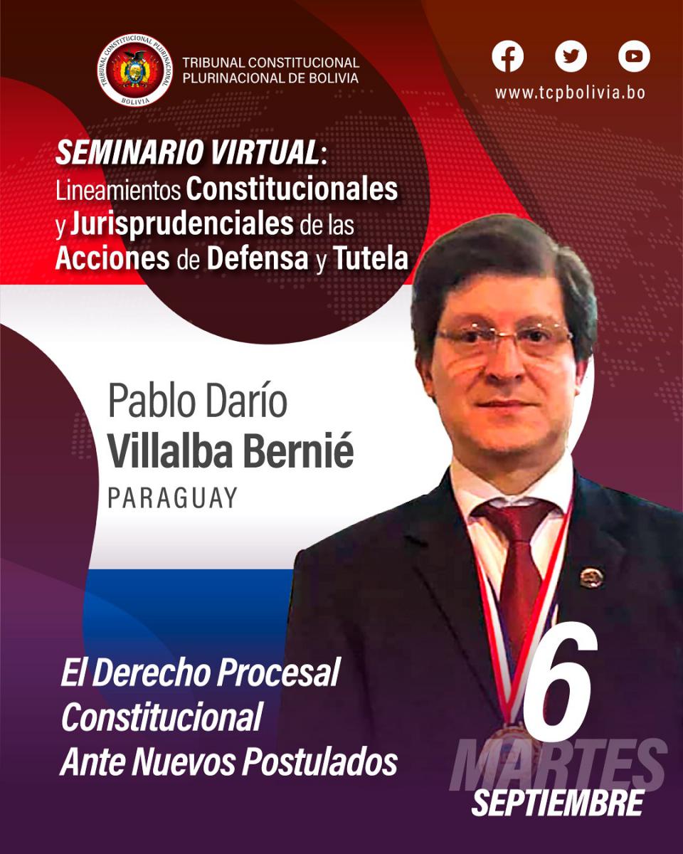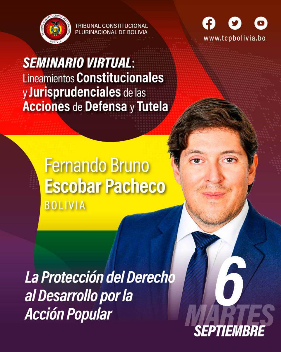 Hoy en el aula virtual del Tribunal Constitucional Plurinacional de Bolivia se desarrolla la segunda jornada del Seminario Internacional “Lineamientos Constitucionales y Jurisprudenciales de las Acciones de Defensa y Tutela”. 6 de septiembre 2022 De 19:00 a 21:50 horas Certificación con valor curricular