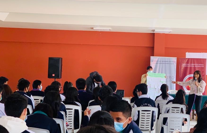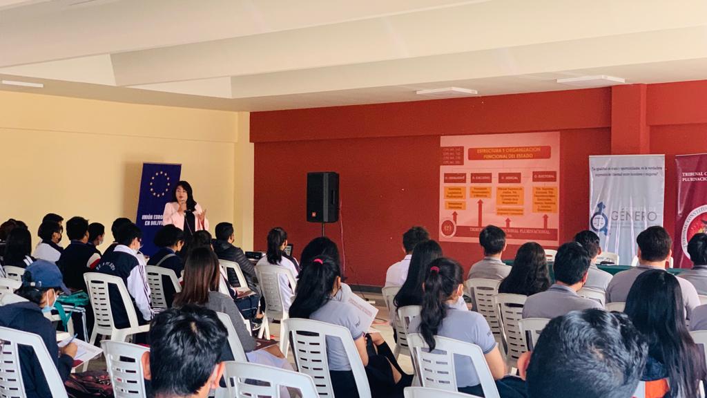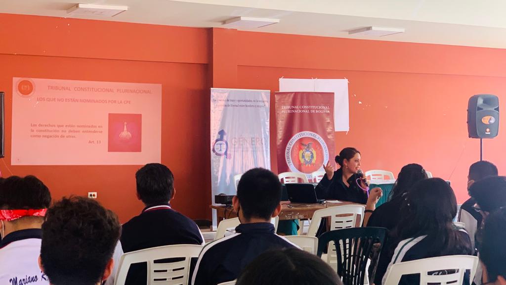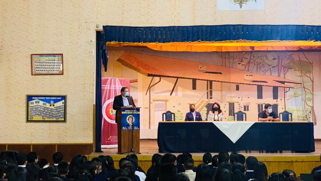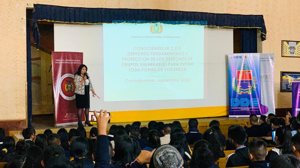 La actividad impulsada por la Magistrada electa por el departamento de Cochabamba y Presidenta del Comité de Género del Órgano Judicial y Tribunal Constitucional Plurinacional MSc. Karem Lorena Gallardo Sejas, fue desarrollada como parte del cumplimiento de objetivos del “Programa Complementario de educación de la Constitución Política del Estado y Derechos Humanos 2022-2027”, respondiendo a las necesidades de capacitación de estudiantes y la materialización de acciones conjuntas programas en el Convenio Marco Interinstitucional suscrito entre el Tribunal Constitucional Plurinacional de Bolivia y la Dirección Departamental de Educación (DDE) de Cochabamba.