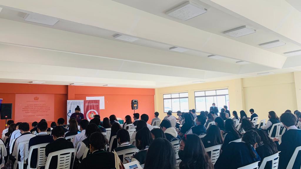 Con la participación de más de 500 estudiantes de 5to y 6to de Secundaria de diferentes Unidades Educativas del Municipio de Cochabamba, se desarrollaron las dos primeras jornadas del Circuito de Talleres “Conociendo la Constitución Política del Estado, Derechos Fundamentales y Protección de los Derechos de Grupos Vulnerables para evitar toda forma de violencia”.