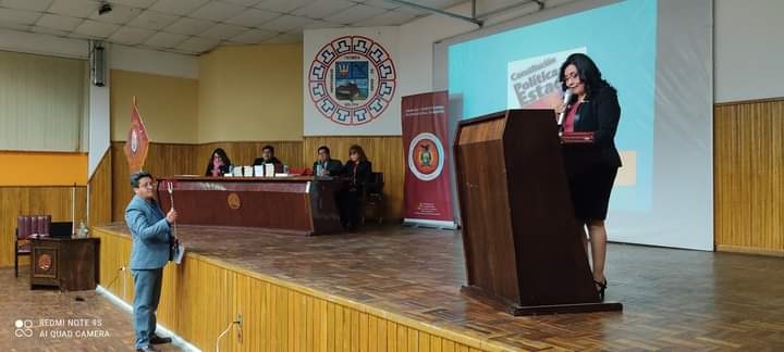 Esta experiencia académica fue realizada los días 14 y 15 de septiembre del año en curso, en el Salón de Actos de la Carrera de Derecho dependiente de la Facultad de Derecho, Ciencias Políticas y Sociales de la Universidad Técnica de Oruro, donde la Magistrada del TCP electa por el departamento, realizó la entrega de material bibliográfico institucional de apoyo para la A.M.P.A.O. en atención a la solicitud realizada por esta Asociación.