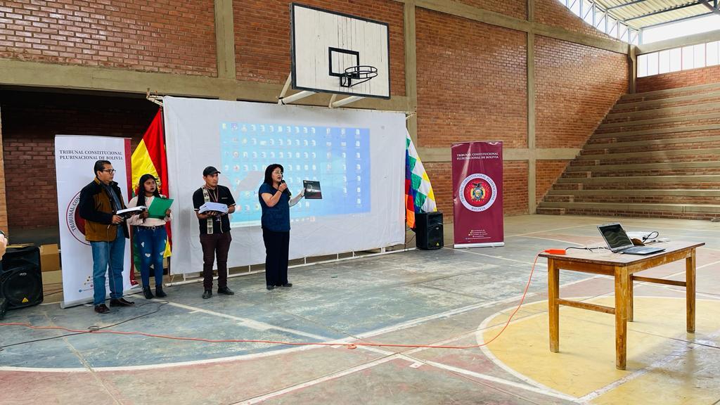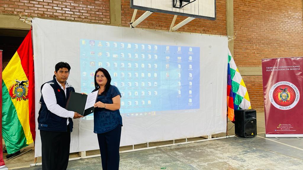 La Magistrada del Tribunal Constitucional Plurinacional de Bolivia (TCP), Karem Lorena Gallardo Sejas, junto al personal de apoyo técnico de su despacho, impartió un Taller de Capacitación sobre “Deslinde Jurisdicción Indígena Originaria Campesina y la Jurisdicción Constitucional”, de igual manera realizó la entrega de la Carta Orgánica del Gobierno Autónomo Municipal de Pojo del departamento de Cochabamba.