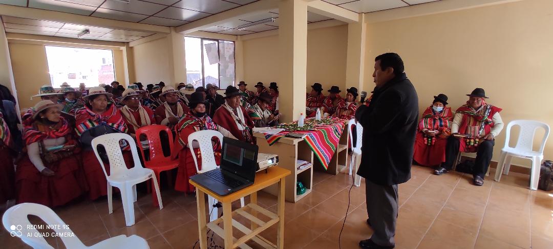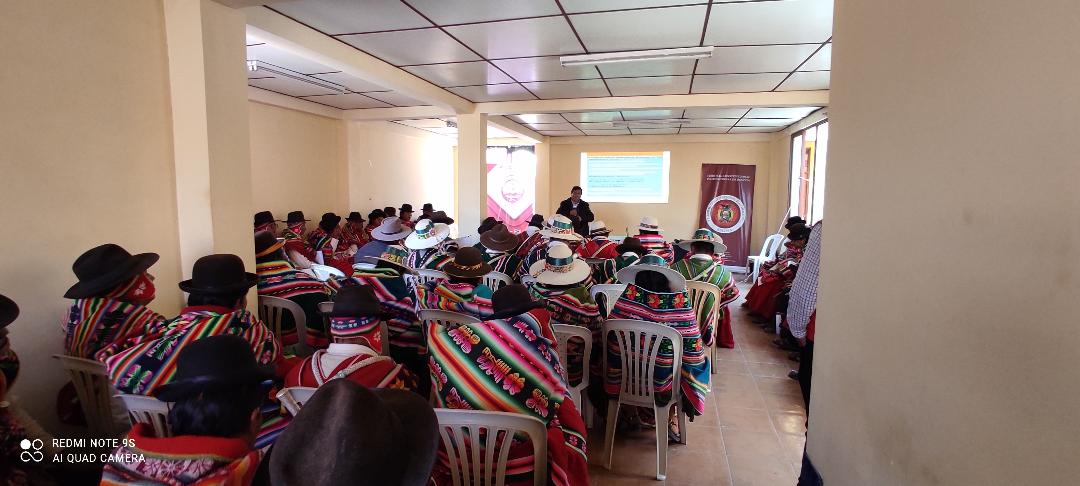 A invitación del Gobierno Autónomo Departamental de Oruro y del Servicio Departamental de Fortalecimiento Municipal, el Letrado Abog. Samuel Tola Larico, en representación de la Magistrada del Tribunal Constitucional Plurinacional (TCP), MSc. Georgina Amusquivar Moller, participó en el taller denominado: “Justicia Indígena Originaria Campesina, Socialización sobre Actualización Creación de Personería Jurídica y Socialización del Censo con Consenso”, dirigido a Autoridades Indígenas Campesinas del Suyu Suras del departamento de Oruro.