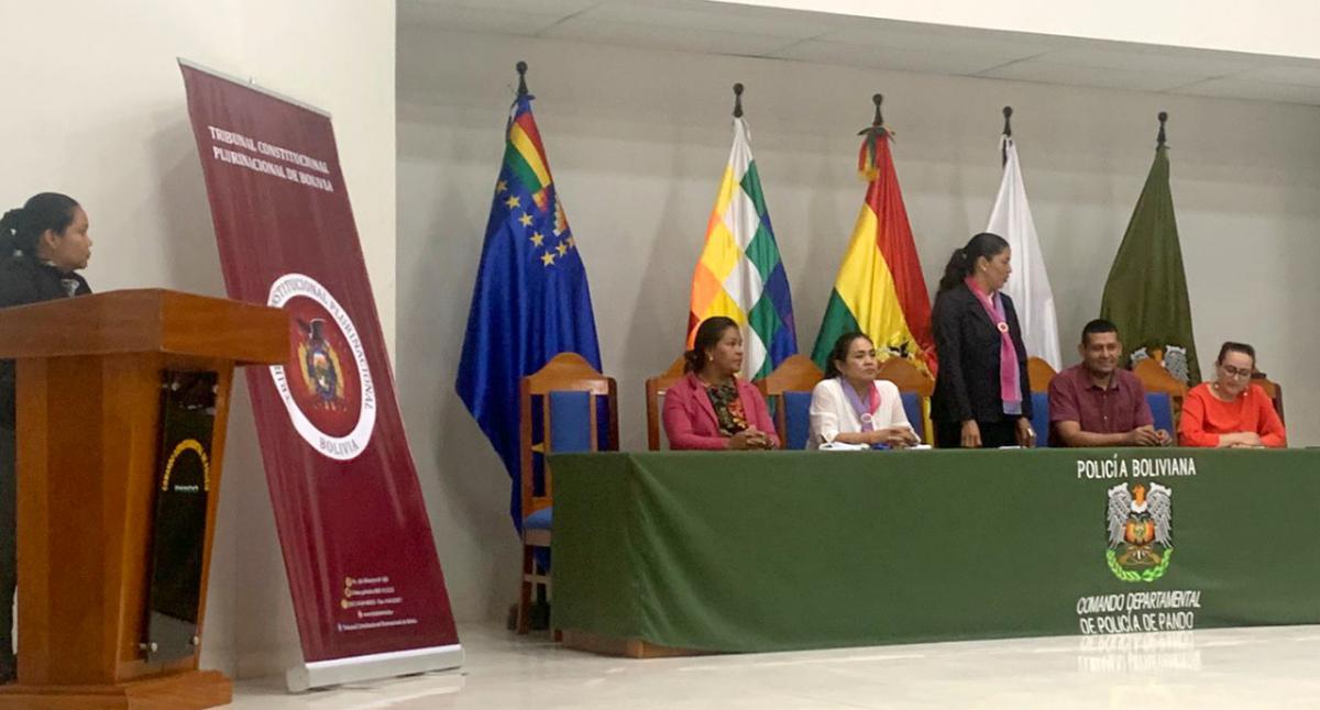 El Magistrado del Tribunal Constitucional Plurinacional de Bolivia (TCP), MSc. René Yván Espada Navía, junto a la Letrada de Sala Cuarta Especializada, Dra. Zulma Calvo, participaron como expositores en el taller de capacitación en “Derechos Fundamentales de la Mujer y Ley 348”, a invitación del Foro Ciudadano de la Mujer “FOCIDEM” de la ciudad de Cobija en el departamento de Pando.