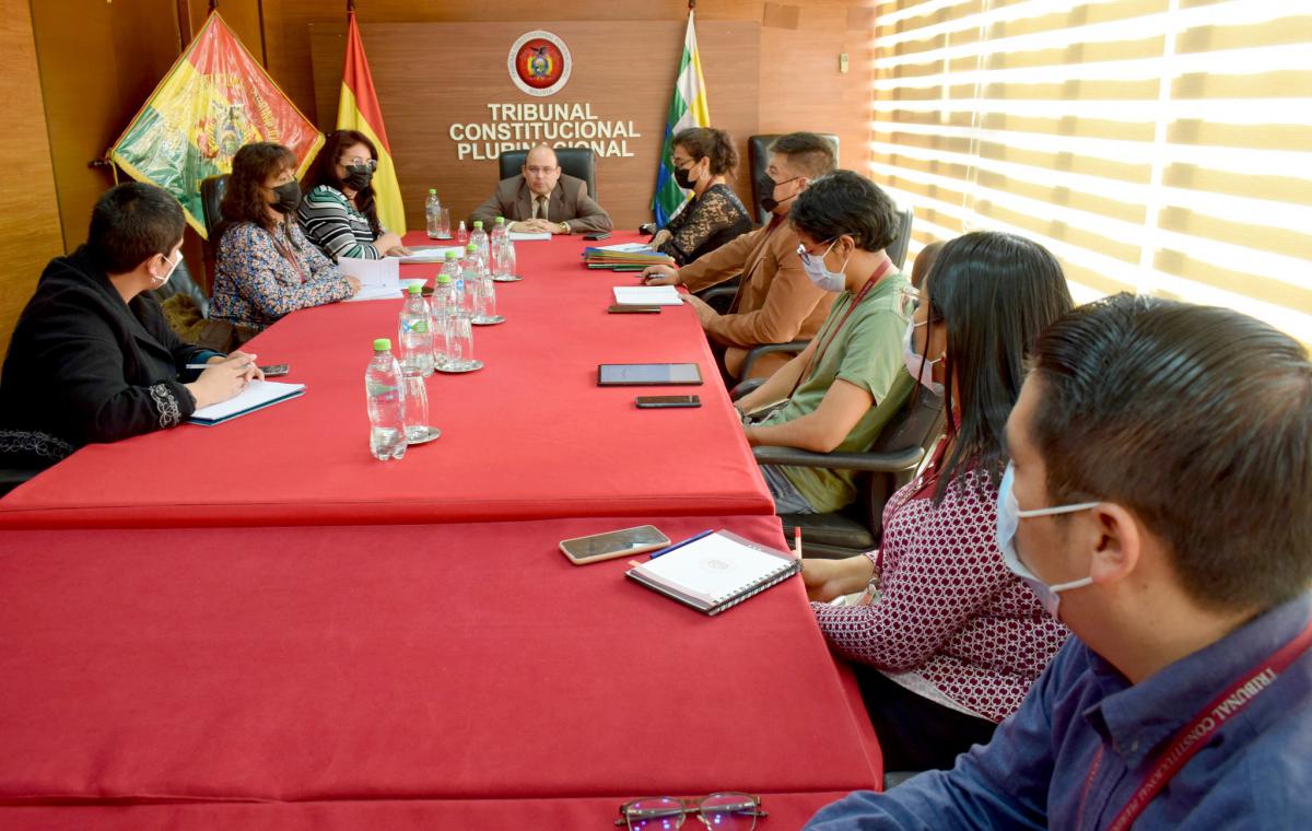 En el marco del Convenio interinstitucional suscrito entre el Tribunal Constitucional Plurinacional de Bolivia y el Comité de Género del Órgano Judicial y TCP, se desarrolló la primera reunión de planificación y coordinación de la gestión 2023, para la realización de acciones conjuntas.