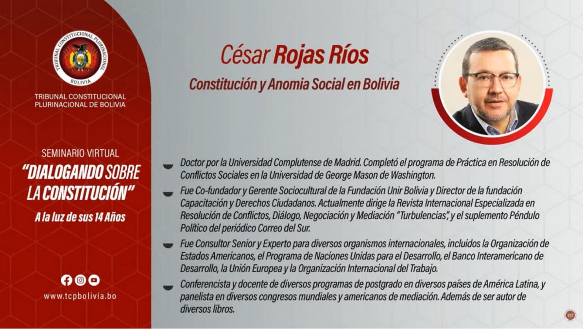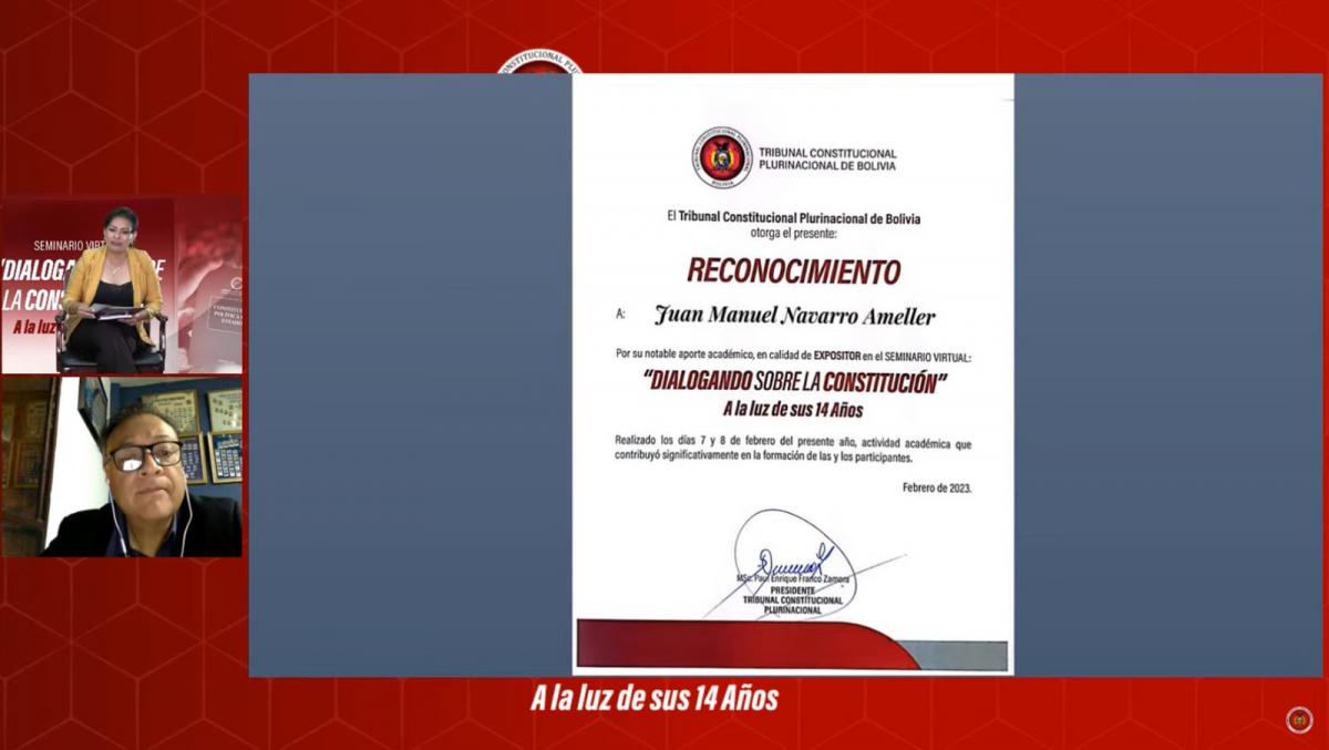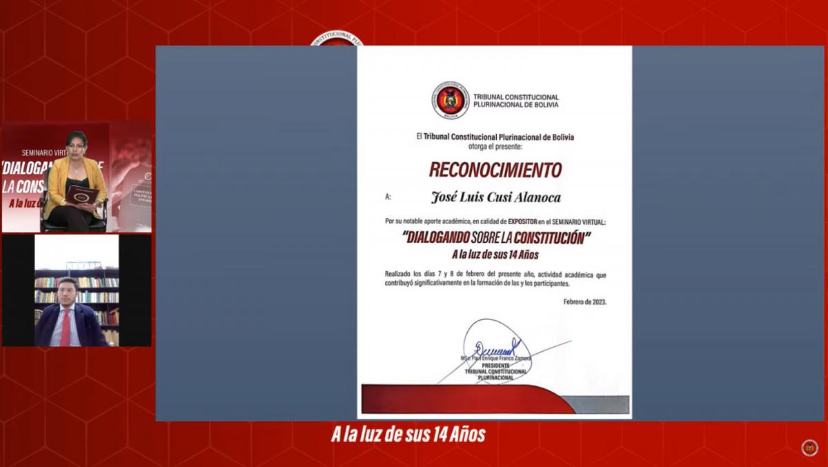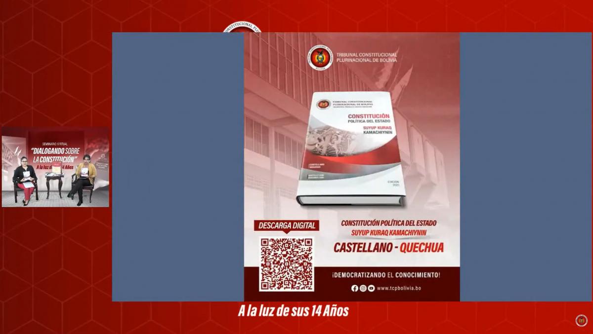 Con la participación de más de 15.000 personas inscritas, concluyó con bastante éxito el Seminario Virtual: “Dialogando Sobre la Constitución”. A la luz de sus 14 años, evento que dio inicio a la agenda académica del Tribunal Constitucional Plurinacional de Bolivia de la presente gestión.