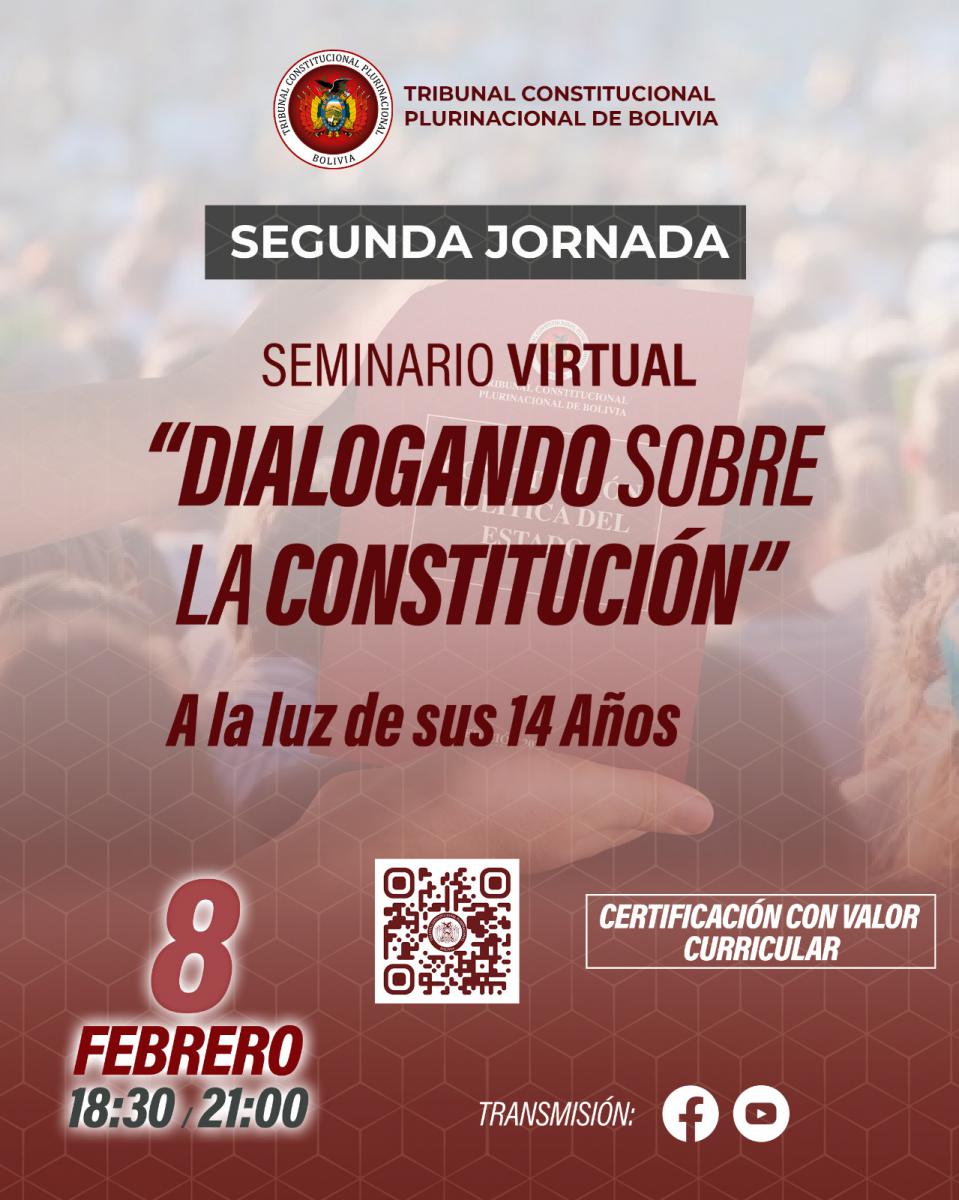 Hoy SEGUNDA JORNADA DEL SEMINARIO VIRTUAL: “DIALOGANDO SOBRE LA CONSTITUCIÓN” A LA LUZ DE SUS 14 AÑOS.
