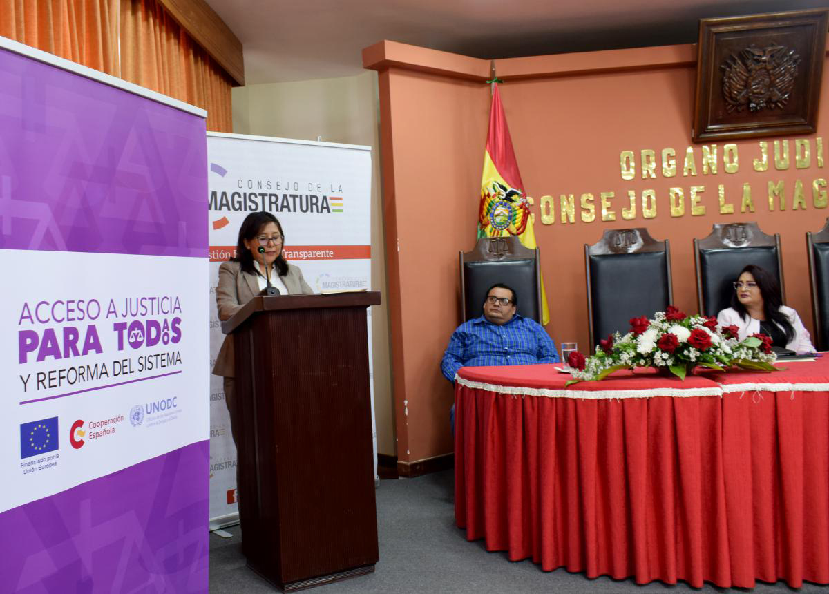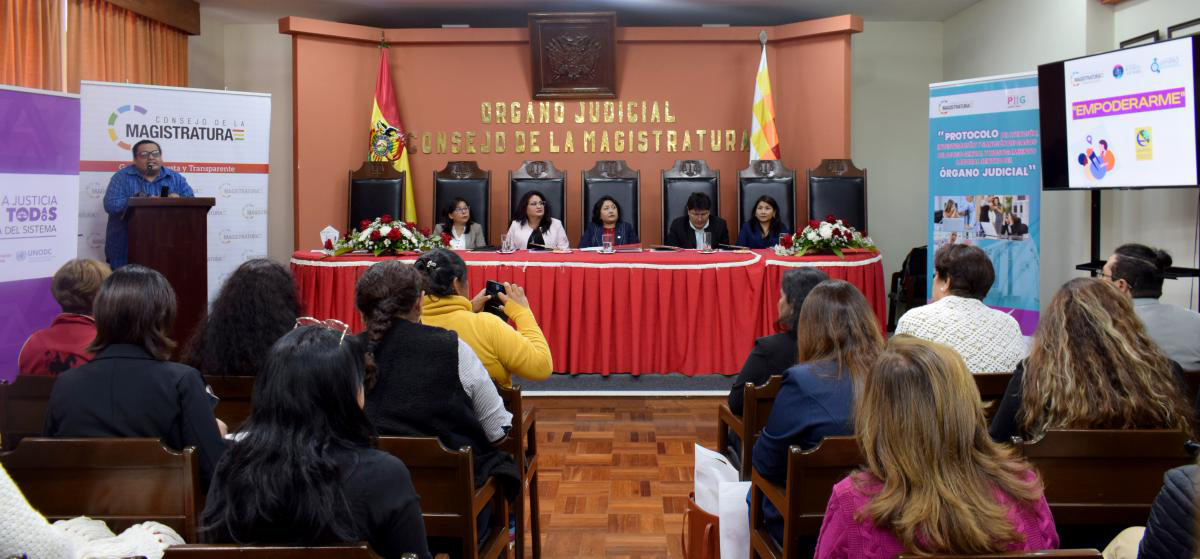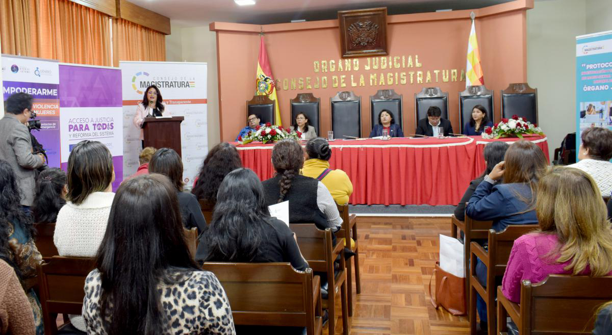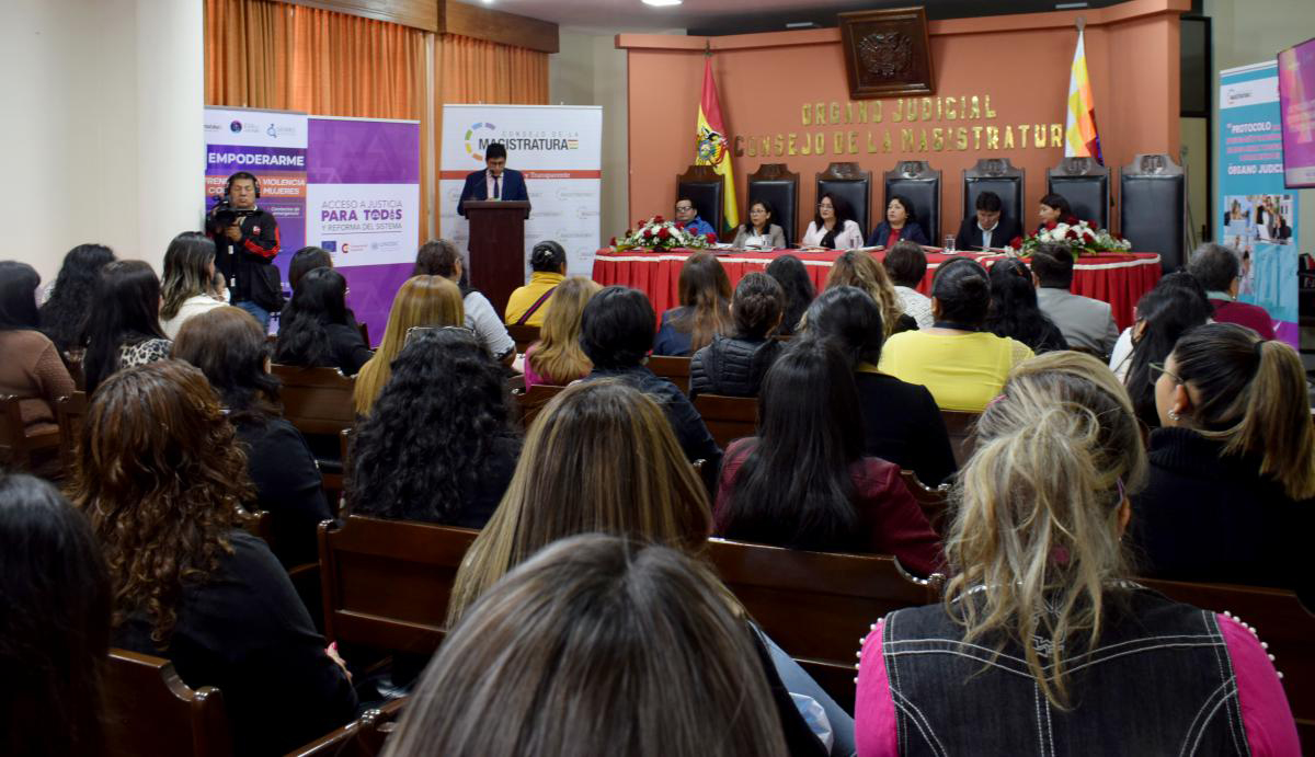 “Pensar en igualdad, construir con inteligencia e innovar para el cambio, a través de la articulación de todas las instancias que trabajan en el ámbito de justicia y la sociedad civil, fuera de protagonismos circunstanciales”, fueron las palabras con las que la Magistrada del Tribunal Constitucional Plurinacional de Bolivia y Presidenta del Comité de género del Órgano Judicial y TCP, MSc. Karem Lorena Gallardo Sejas