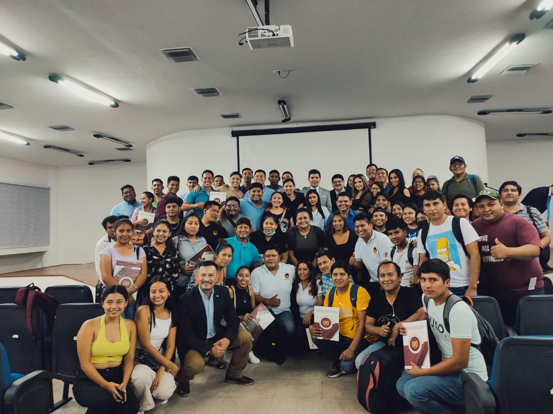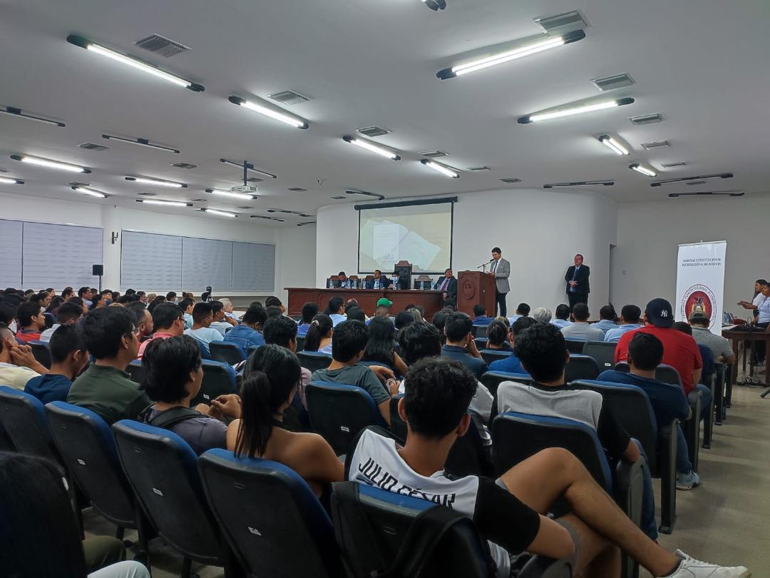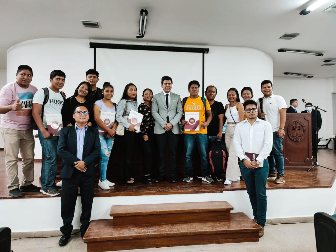 De la actividad académica participaron también, el Decano de la Facultad de Ciencias Jurídicas, Políticas, Sociales y Relaciones Internacionales de la UAGRM, Dr. Alfonso Coca Echeverría; el Director de la Carrera de Derecho, Dr. José Luis Coplot López; el Director de la Unidad de Postgrado, Dr. Marco Sánchez; el Delegado del Ilustre Consejo Universitario del Estamento Estudiantil, Gustavo Hurtado; el Secretario General de la Federación Universitaria Local, Cristian Maldonado; el Secretario Ejecutivo del Centro de Estudiantes de la Carrera de Derecho, Miguel Álvarez; el Secretario de Derechos Humanos de la Confederación Universitaria Boliviana, Harold Valverde, junto a las y los estudiantes invitados de la UAGRM, a quienes se hizo entrega del Compendio Normativo Constitucional y la Constitución Política del Estado.