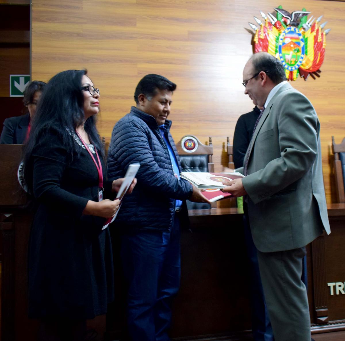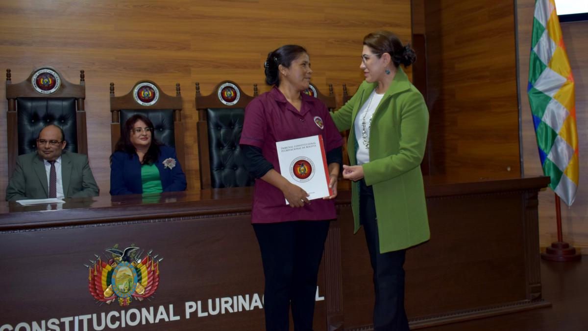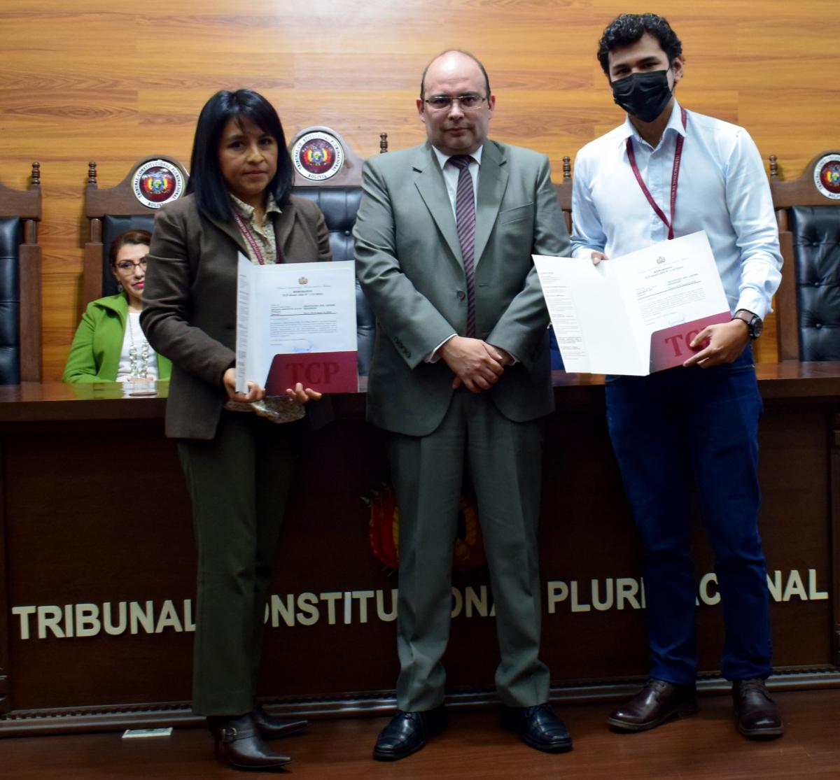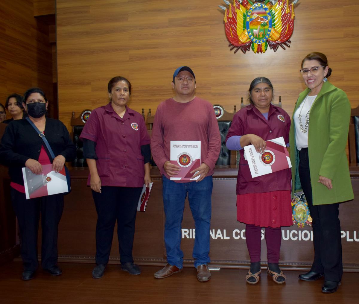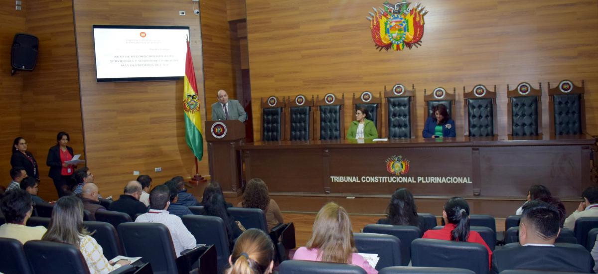 Autoridades del Tribunal Constitucional Plurinacional de Bolivia, en un acto especial desarrollado en conmemoración al “Día del Trabajo”, realizaron esta jornada la entrega de certificados de reconocimiento a 53 servidoras y servidores públicos más destacados de la institución, por su compromiso expresado en la puntualidad, responsabilidad y antigüedad en el desempeño laboral.
