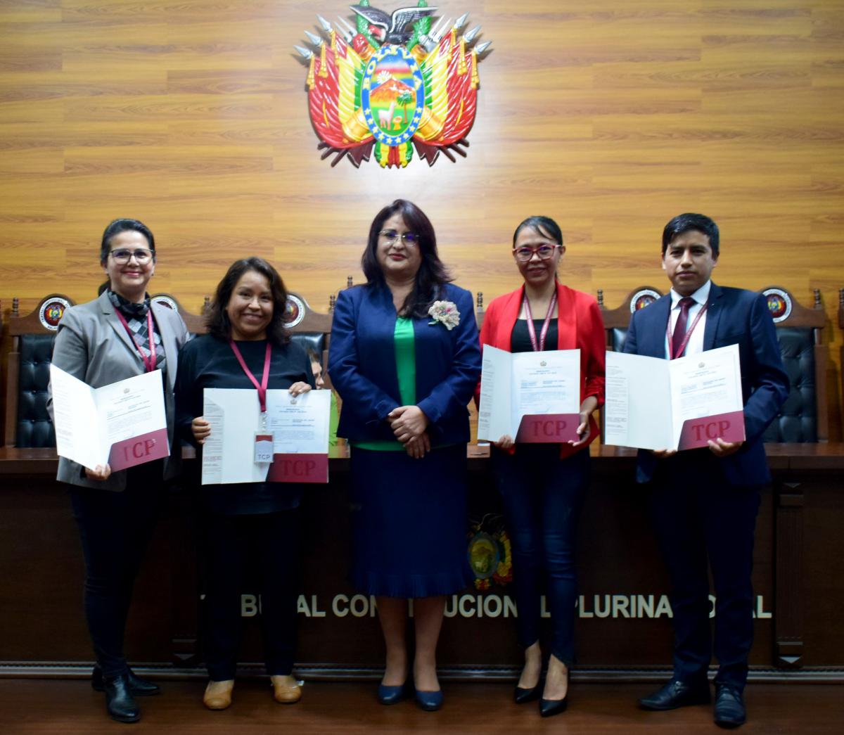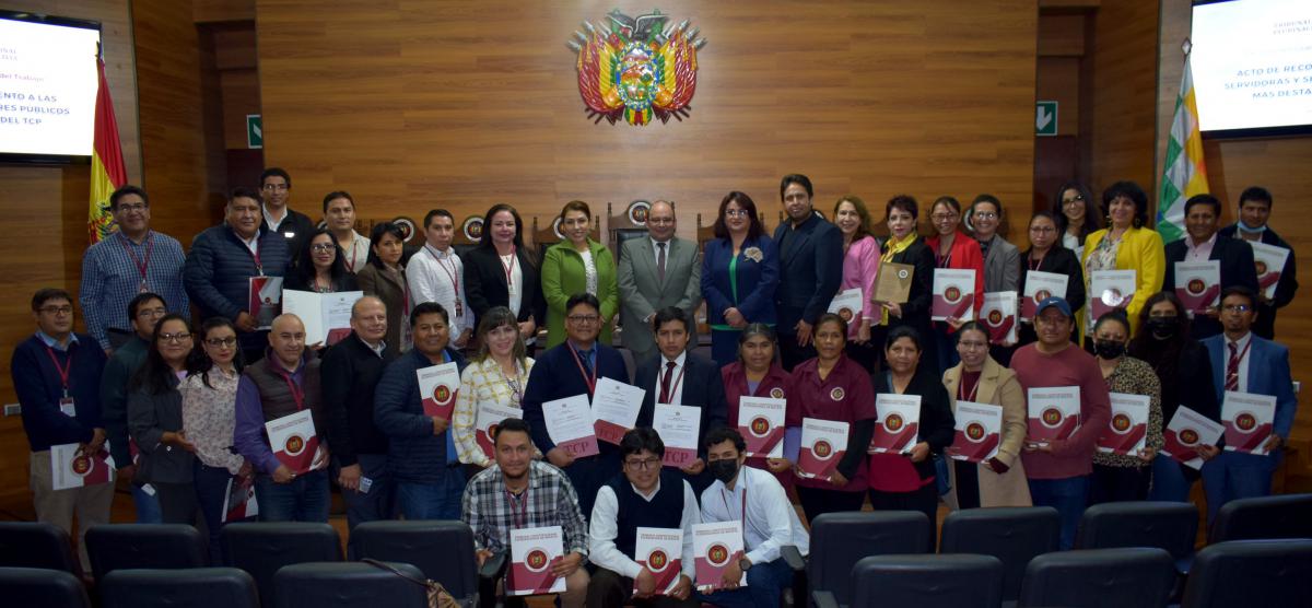 “Nos satisface preponderar la labor sacrificada de todo el personal del TCP y poder transmitirles nuestro agradecimiento, puesto que, sin su compromiso no podríamos llegar al sexto año de funciones. Hoy, especialmente, las Magistradas y Magistrados destacan la labor del personal de cada despacho en consideración al desempeño efectuado, asimismo reconocemos la puntualidad de 20 personas que no han tenido un solo retraso en su ingreso a la institución durante la gestión anterior, así como el denodado trabajo que realiza el personal de servicio que permite contar siempre con ambientes organizados y limpios; y, distinguimos además la antigüedad de algunas servidoras y servidores”, dijo la autoridad.