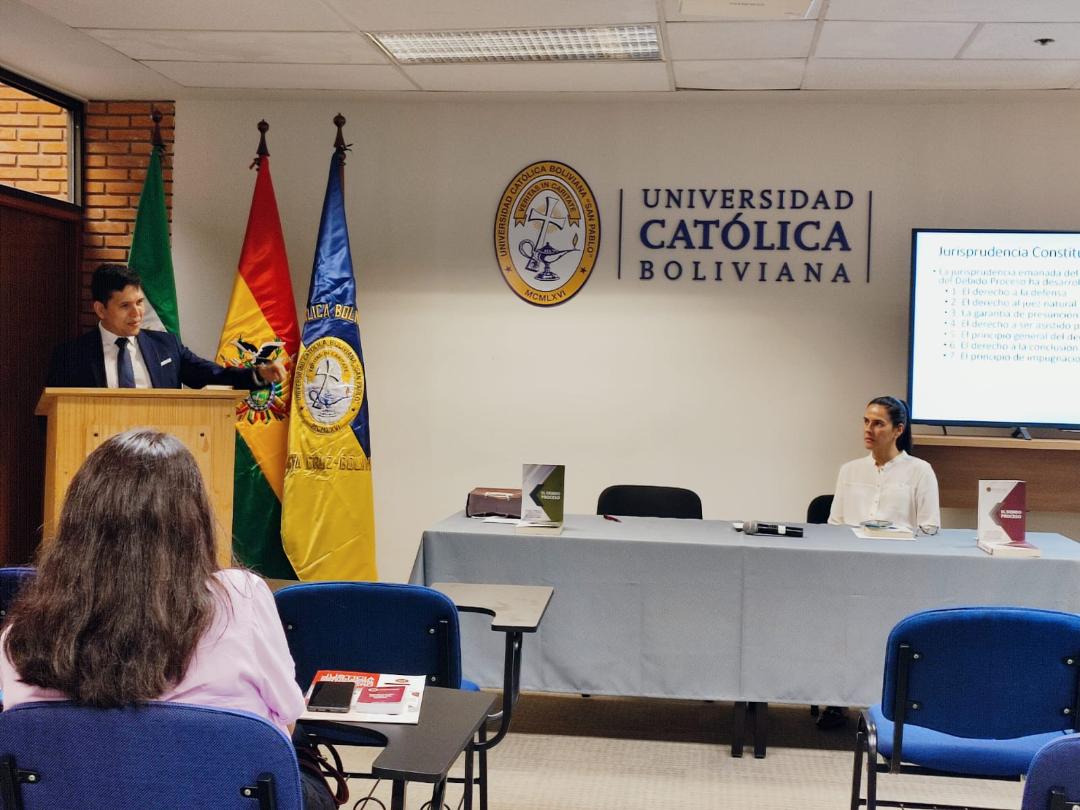 El Magistrado del Tribunal Constitucional Plurinacional (TCP), MSc. Carlos Alberto Calderón Medrano, a invitación de la Universidad Católica Boliviana «San Pablo» – Sede Santa Cruz, realizó la presentación del libro de su autoría: “El Debido Proceso”.