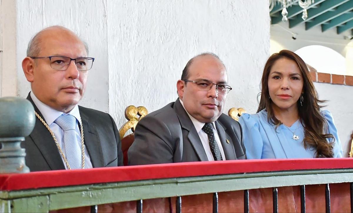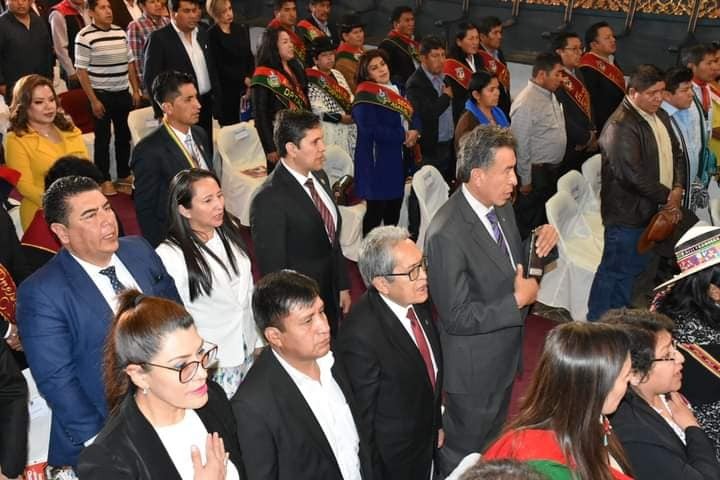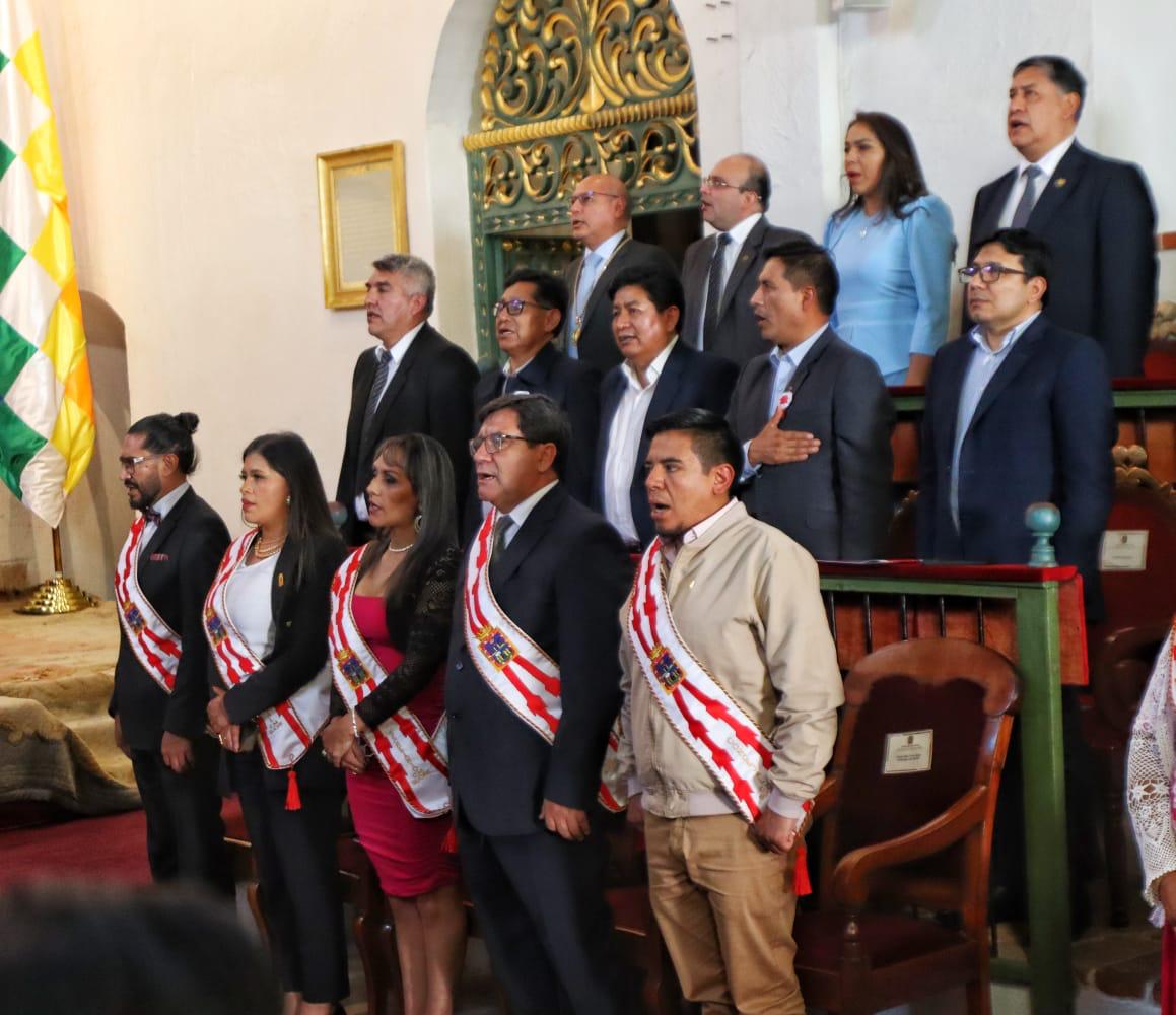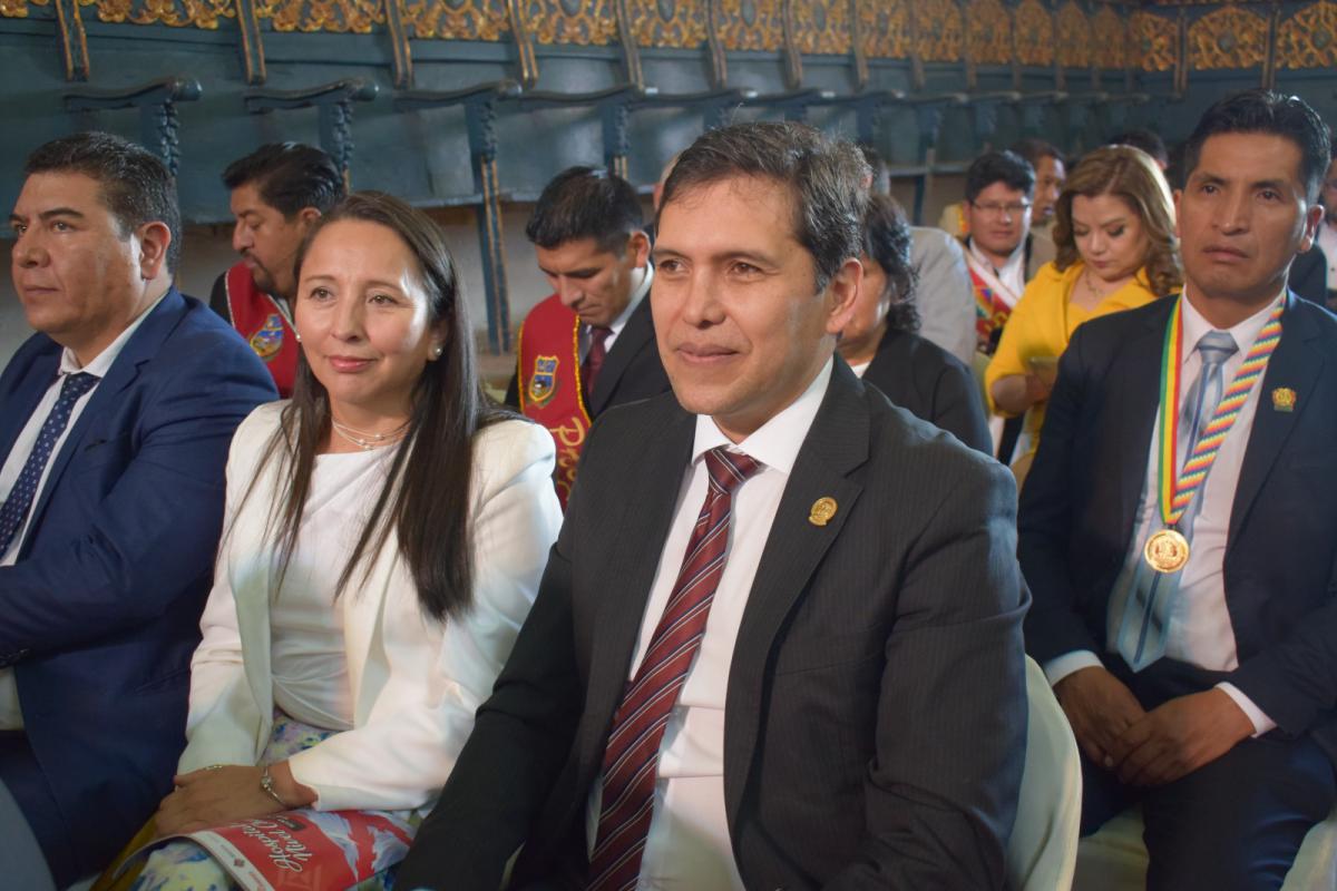 El Presidente del Tribunal Constitucional Plurinacional, Ph.D. Paul Enrique Franco Zamora, la Magistrada MSc. Julia Elizabeth Cornejo Gallardo y el Magistrado MSc. Carlos Alberto Calderón Medrano, participaron de la Sesión de Honor conjunta de la Asamblea Legislativa Departamental de Chuquisaca y el Concejo Municipal de Sucre, realizada en homenaje a los 214 años del Primer Grito de Libertad del 25 de mayo de 1809.