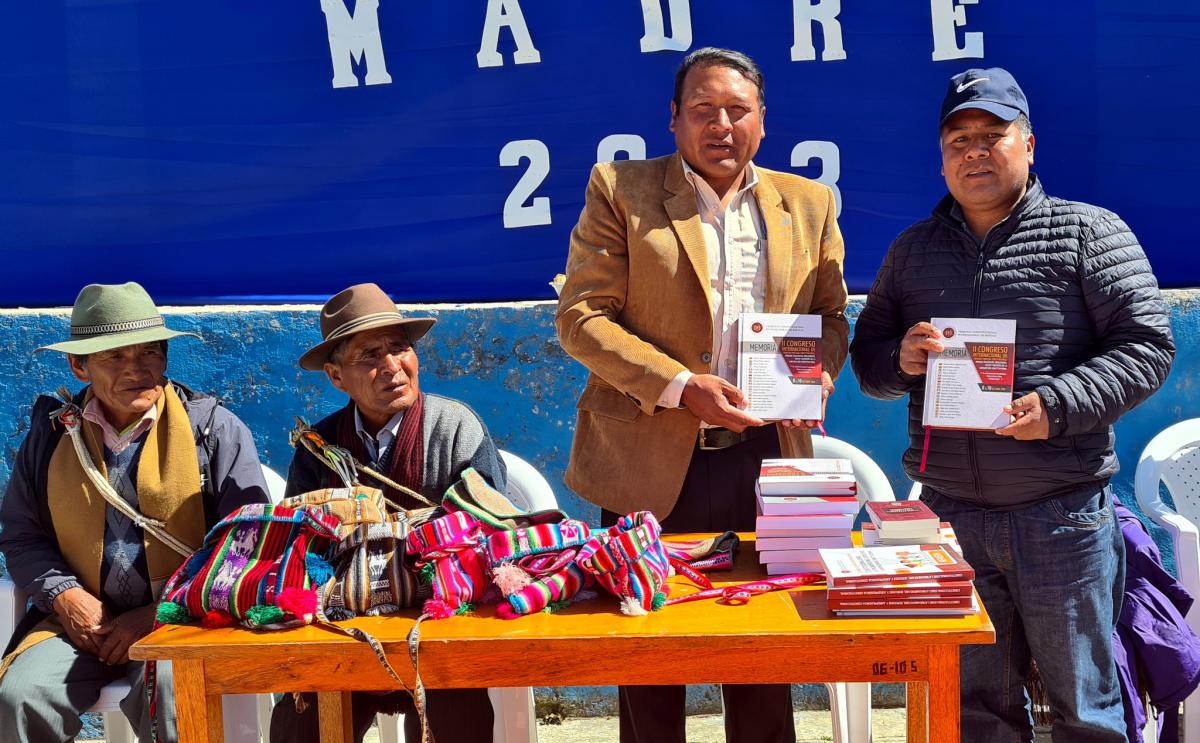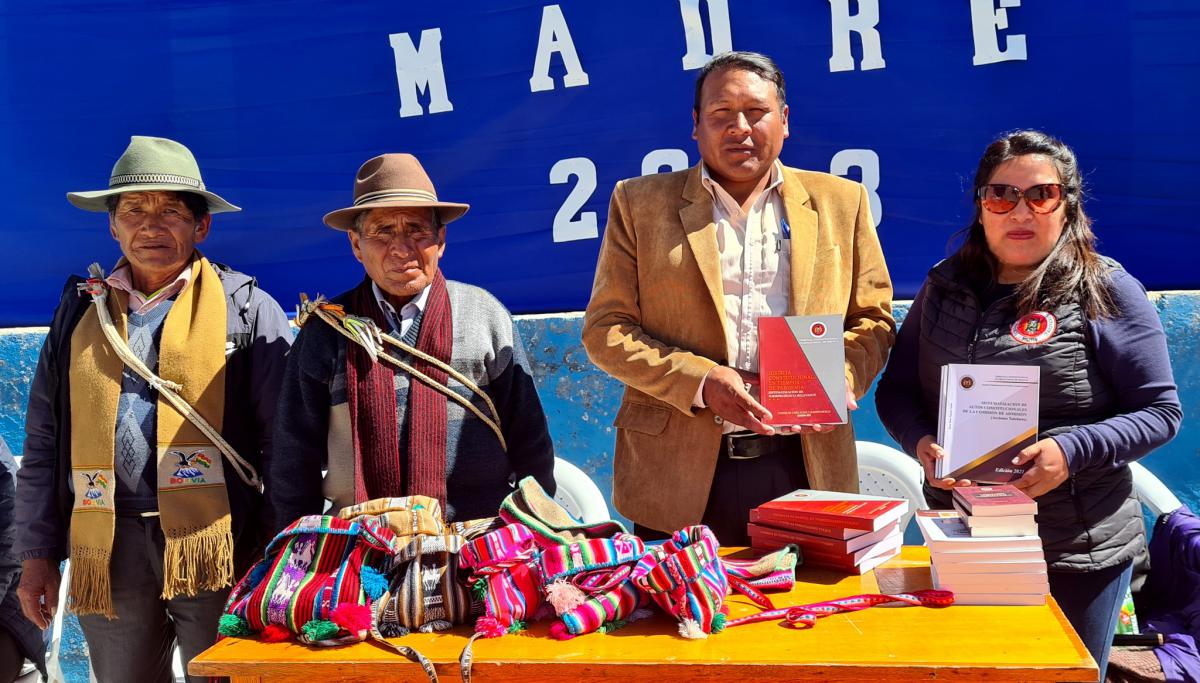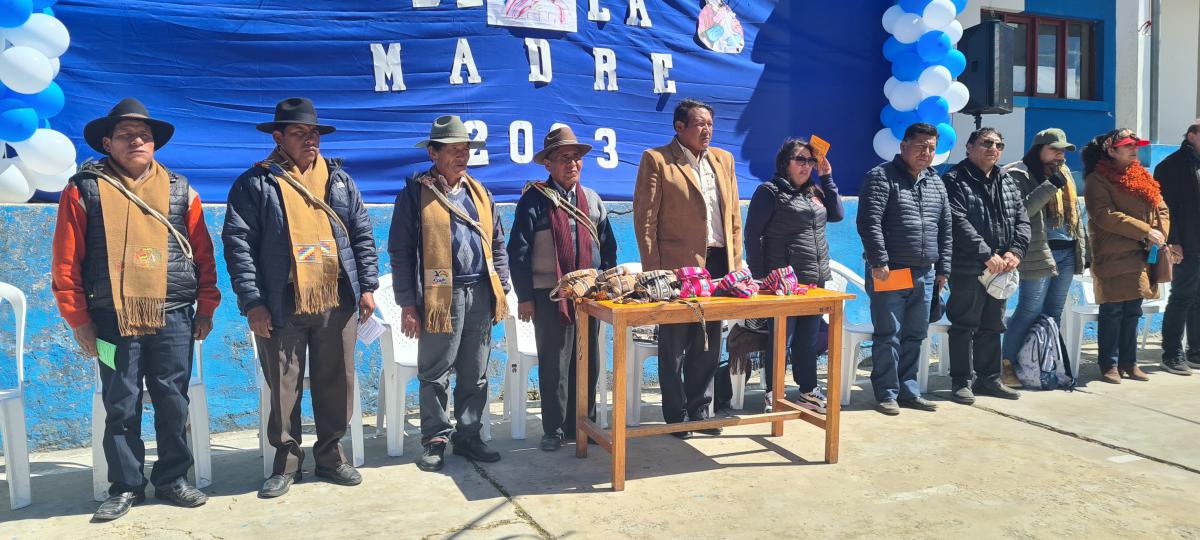 La Magistrada del Tribunal Constitucional Plurinacional de Bolivia – TCP, MSc. Brigida Celia Vargas Barañado, junto a su equipo interdisciplinario, a invitación de los dirigentes y la Dirección Distrital de Educación de Copacabana, realizaron un taller sobre: “Justicia Indígena Originaria Campesina (JIOC) y Acciones de Defensa”, actividad dirigida a los padres de familia de la Unidad Educativa “Challapampa” y comunarios, donde además se realizó el festejo en honor al Día de la Madre y entregó presentes a los niños del lugar.