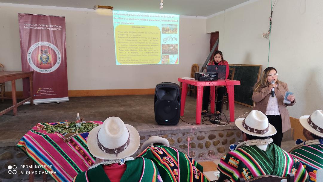 En coordinación con las Autoridades Indígena Originaria Campesinas del Municipio de Turco, Provincia Sajama del Departamento de Oruro, la Magistrada del Tribunal Constitucional Plurinacional de Bolivia – TCP, MSc. Georgina Amusquivar Moller, llevó adelante el taller denominado: “Jurisdicción Indígena Originaria Campesina en el Marco de la Justicia Plural Constitucional”.