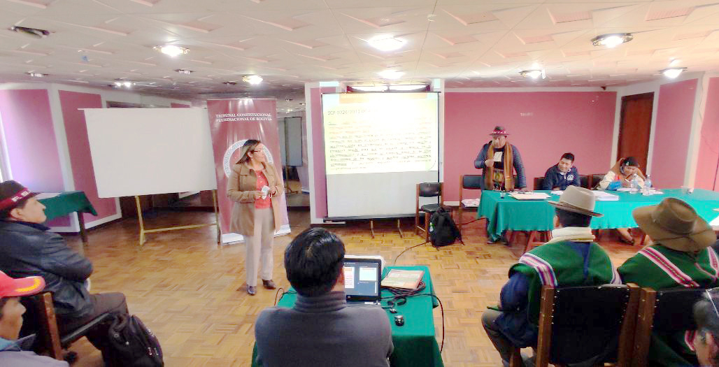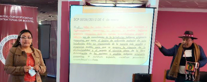 La autoridad electa por ese departamento, en el momento de su intervención, realizó un enfoque del Modelo de Estado y el reconocimiento de las naciones y pueblos indígena originario campesinos y los ámbitos de vigencia, consultas de Autoridades Indígena Originaria Campesinas sobre la aplicación de sus normas a un caso concreto ante el Tribunal Constitucional Plurinacional.