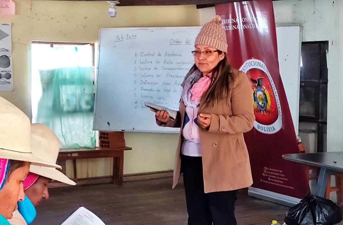 En el marco de la coordinación interinstitucional con el Comité de Jurisdicción Indígena Originaria Campesina de la Cámara de Diputados de la Asamblea Legislativa Plurinacional de Bolivia, la Magistrada del Tribunal Constitucional Plurinacional, MSc. Georgina Amusquivar Moller, llevó adelante el taller de socialización y capacitación: “La justicia indígena originaria y sus alcances en el Estado Plurinacional de Bolivia”, dirigido a las autoridades del Gobierno Autónomo de la Nación Uru Chipaya, de la Provincia Sabaya del Departamento de Oruro.