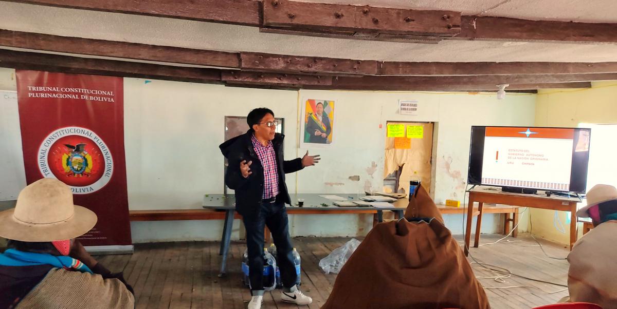 También se habló acerca del “Régimen Autonómico”, siendo el Letrado de la Sala Primera del TCP, Abg. Julio Nelson Vargas Fuño, el expositor encargado de referirse a la aplicación del Estatuto Autonómico Indígena Originario de la Nación Uru Chipaya, así como de absolver las dudas de las y los participantes, a quienes se hizo entrega de material institucional y de certificados de asistencia.