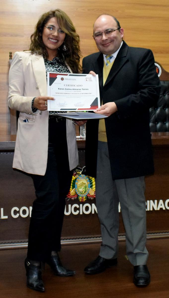 Por su parte y a la conclusión del evento, el Secretario de Libertad de Prensa, Organización y Conflicto, Franz Amado Terán, a nombre de Federación de la Prensa, hizo entrega de un certificado de reconocimiento al Presidente del TCP, Paul Franco Zamora, por el aporte académico realizado en calidad de expositor del curso que, en su criterio, contribuyó significativamente a la formación de sus afiliados.