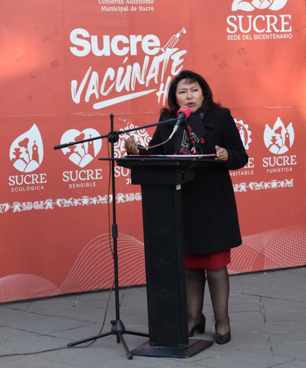Durante su alocución, la autoridad manifestó su agradecimiento al Gobierno Autónomo Municipal de Sucre (GAMS) por la invitación realizada, para formar parte del acto rumbo al Bicentenario de Bolivia, y permitirle rendir su homenaje al Departamento de La Paz, en conmemoración de los 214 años del Grito Libertario de América Latina.