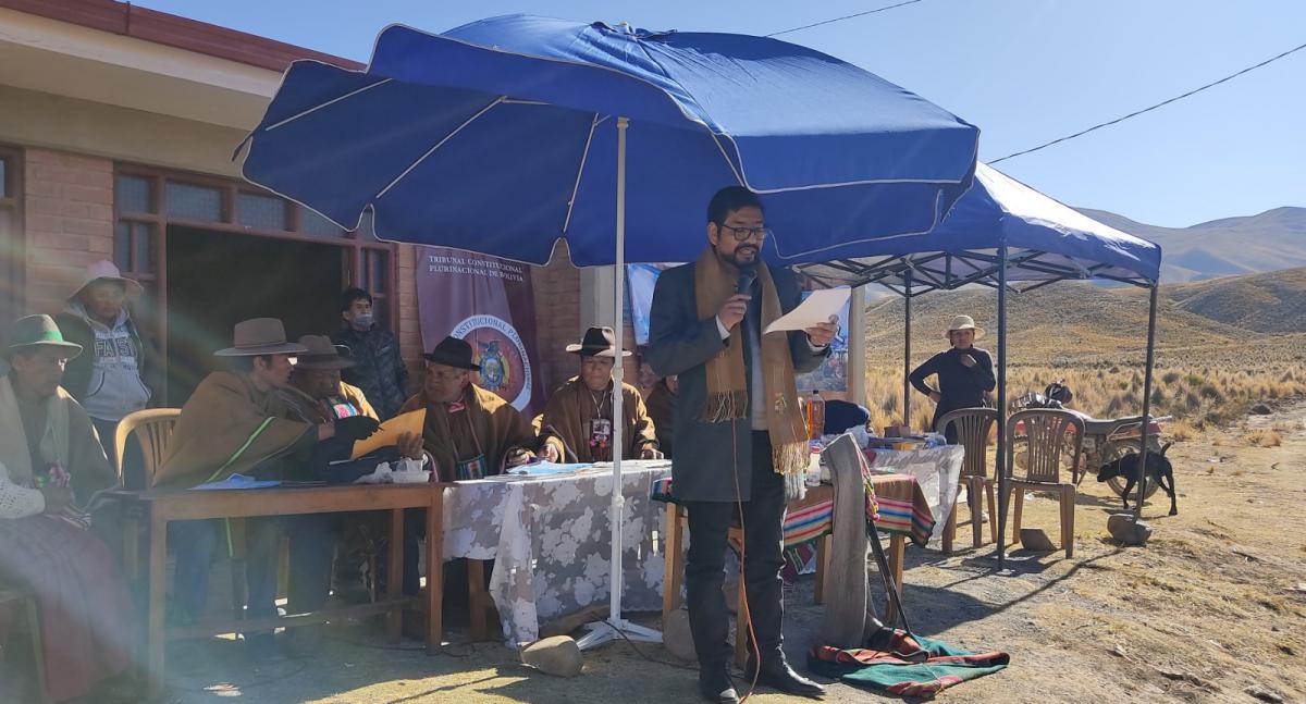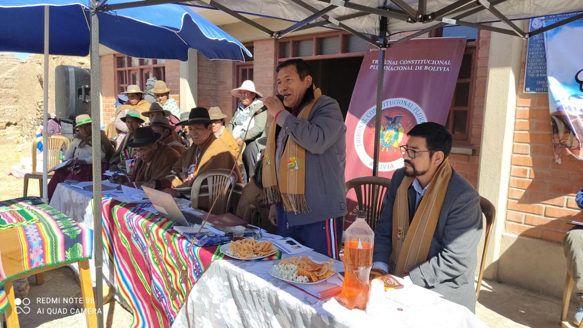 En la comunidad de la Sub central de Ticaña del Ayllu Cóndor Apacheta del municipio de Antequera, provincia Poopó del departamento de Oruro, con una gran participación de autoridades indígena originaria campesinas y comunarios, se llevó adelante el taller de socialización: “Jurisdicción Indígena Originaria Campesina en el marco de la Justicia Constitucional”, organizado por el despacho de la Magistrad del Tribunal Constitucional Plurinacional de Bolivia – TCP, MSc. Georgina Amusquivar Moller.