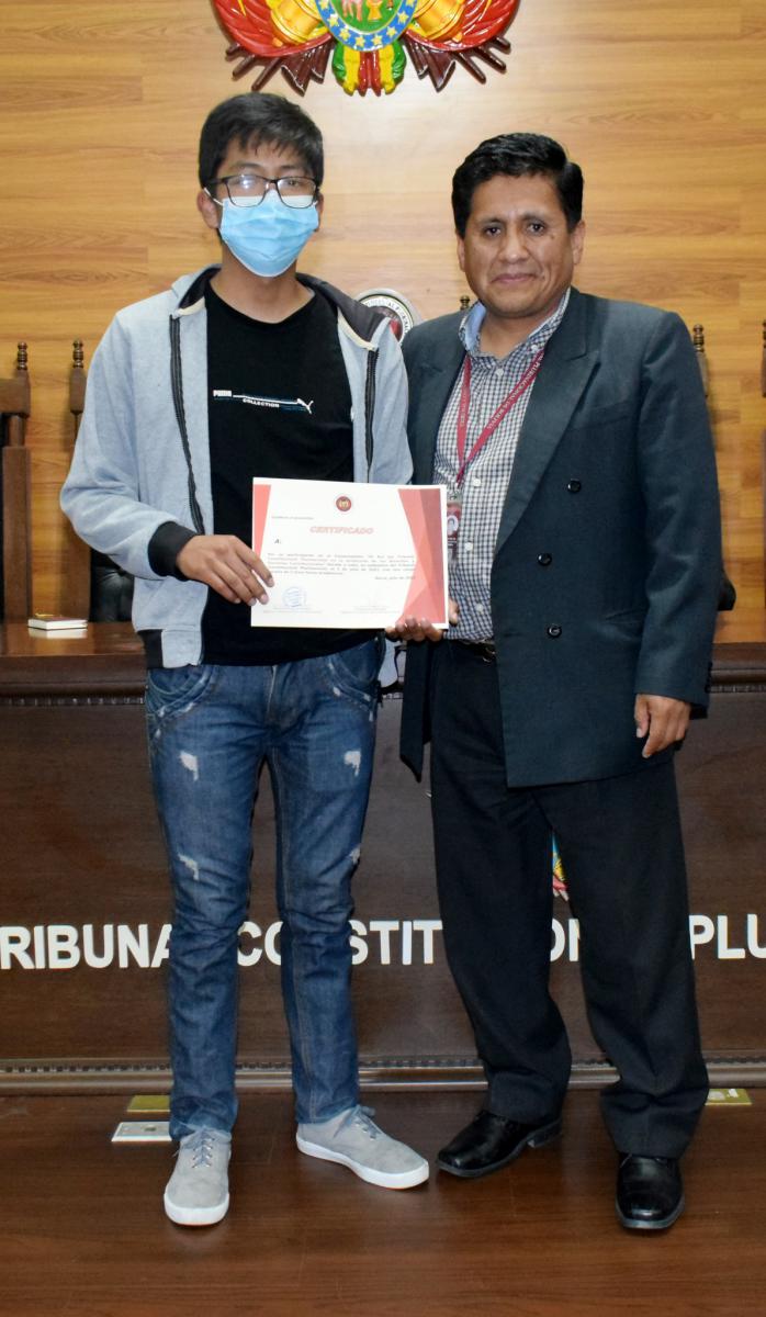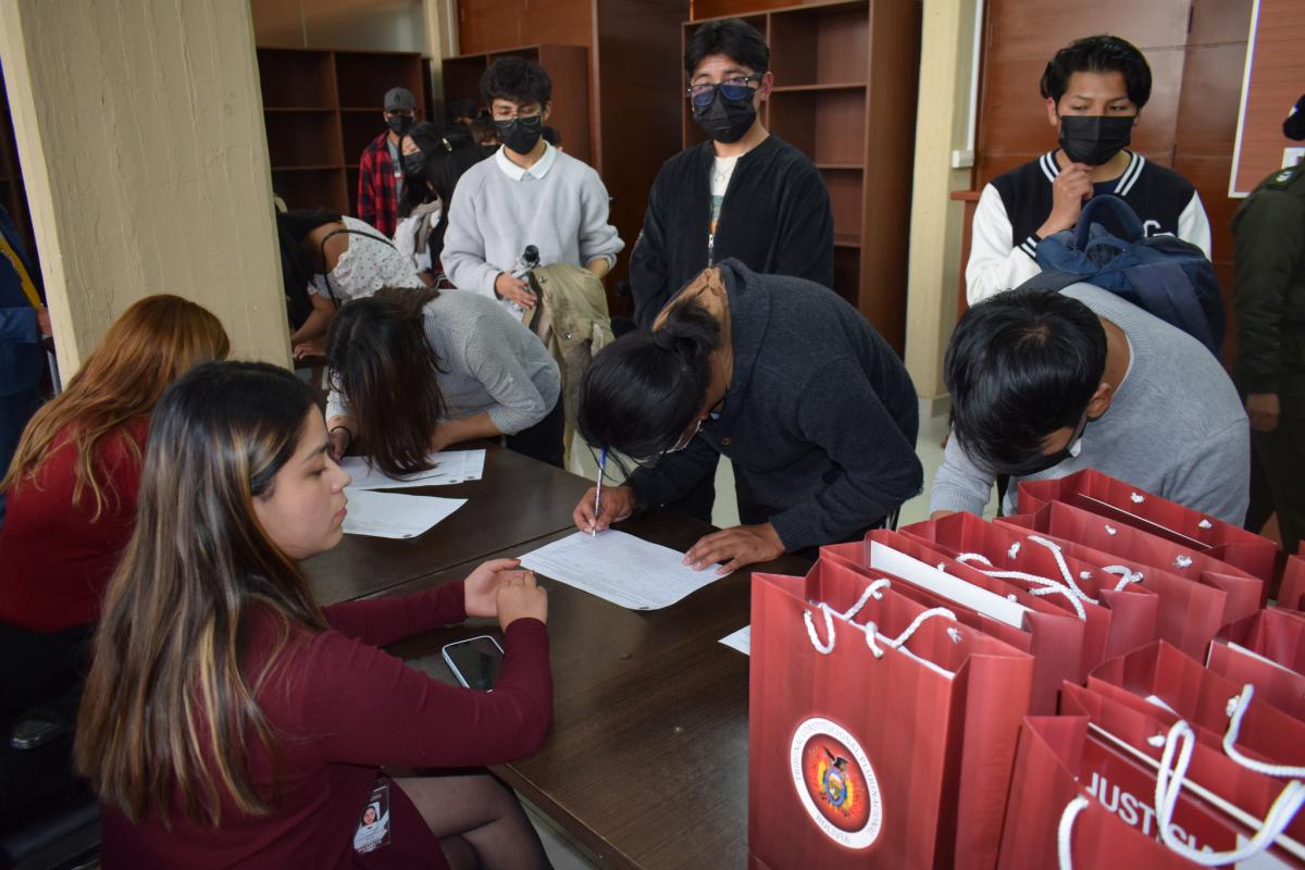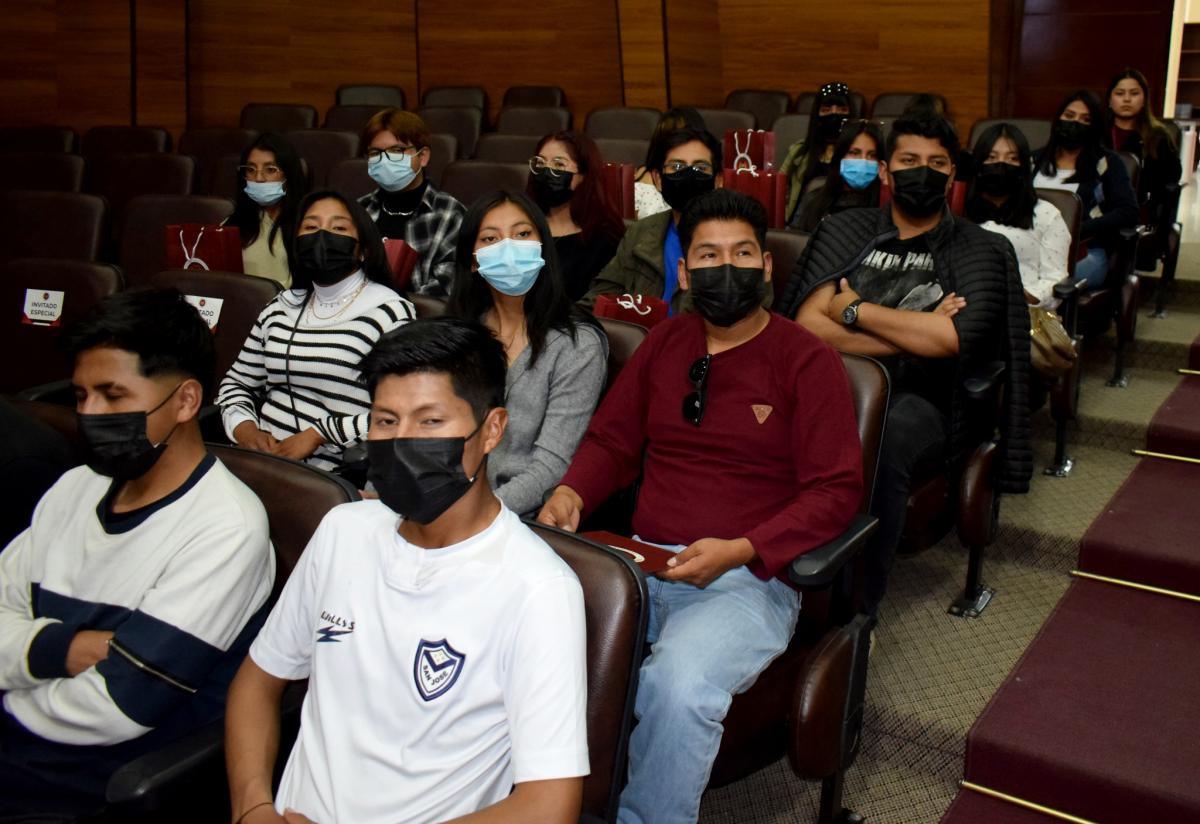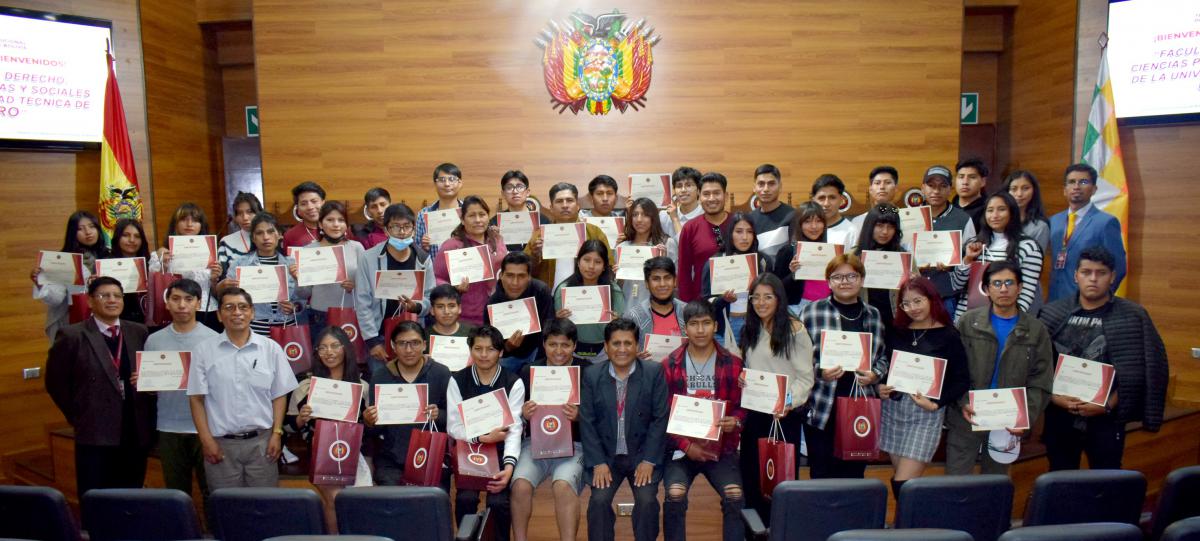 La delegación de 45 universitarias y universitarios estuvo acompañada por el Lic. Francisco Valeriano López Ramos, Docente de la Carrera de Derecho de la UTO, quienes a la conclusión del evento recibieron una certificación por su participación en el Conversatorio, así como material institucional.