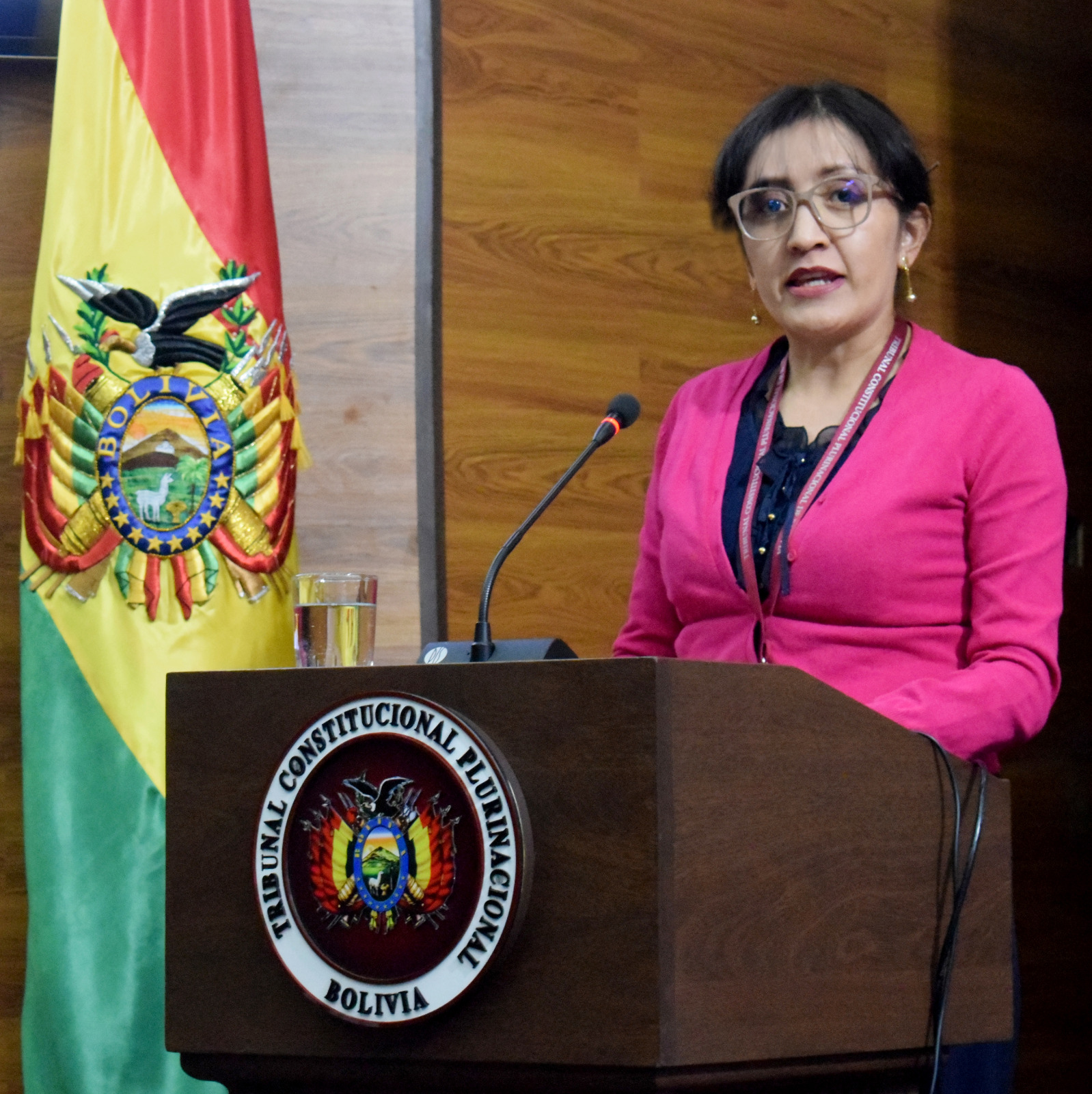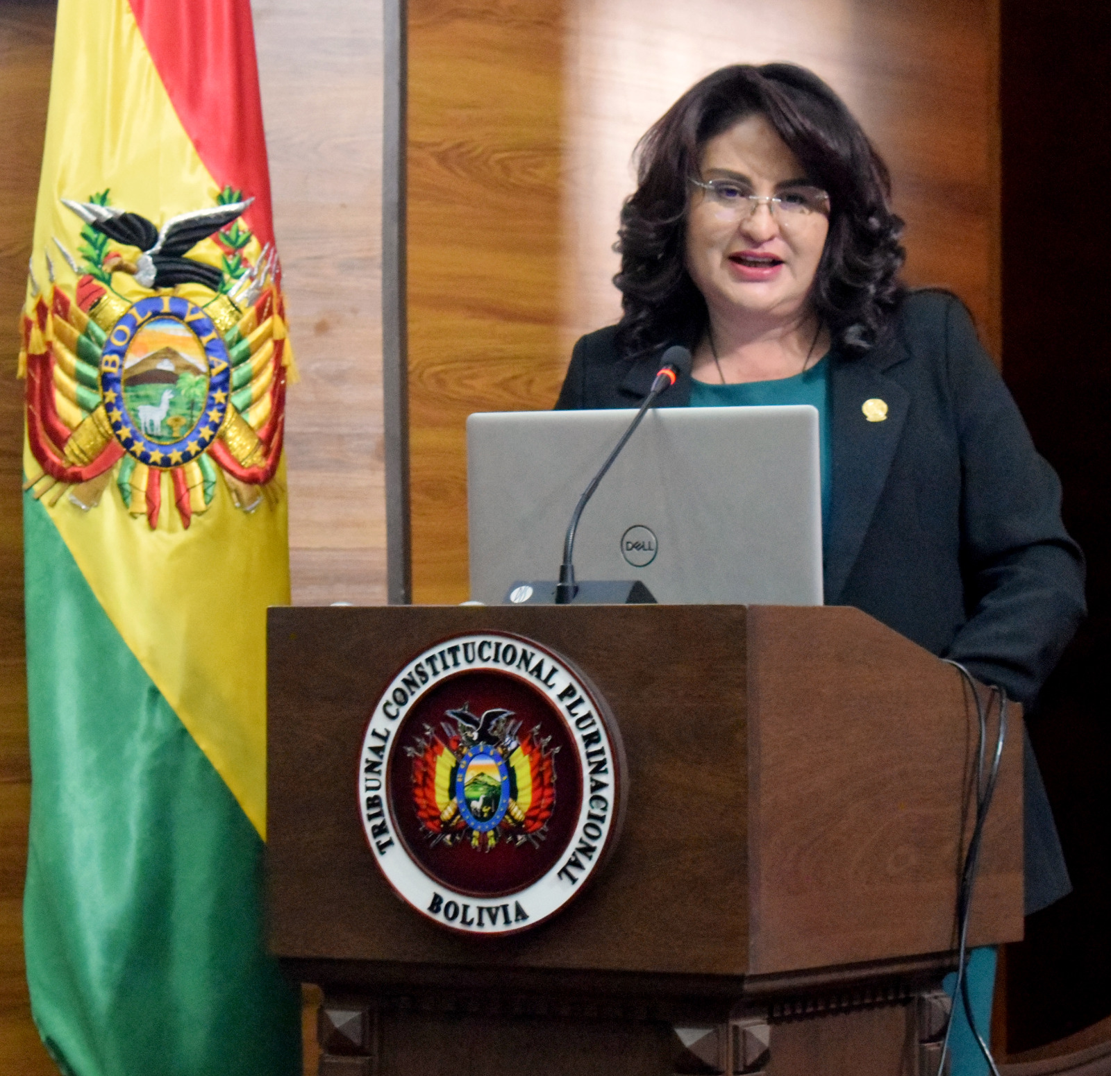 “Me siento muy orgullosa de tenerlos en el Tribunal, porque yo soy graduada de San Simón, y en esta ocasión satisfactoria quiero explicarles la labor que desarrollamos en el TCP como órgano jurisdiccional independiente. Somos garantes, contralores e intérpretes de la Constitución Política del Estado, ejercemos el control de constitucionalidad de leyes nacionales, departamentales y municipales y estatutos autonómicos; y, precautelamos los derechos y garantías constitucionales de la población boliviana”, manifestó la autoridad a los estudiantes, mientras se refirió también a las atribuciones y composición de la Entidad, además de invitar a acceder a las redes sociales institucionales y el Observatorio “Justicia y Género”.