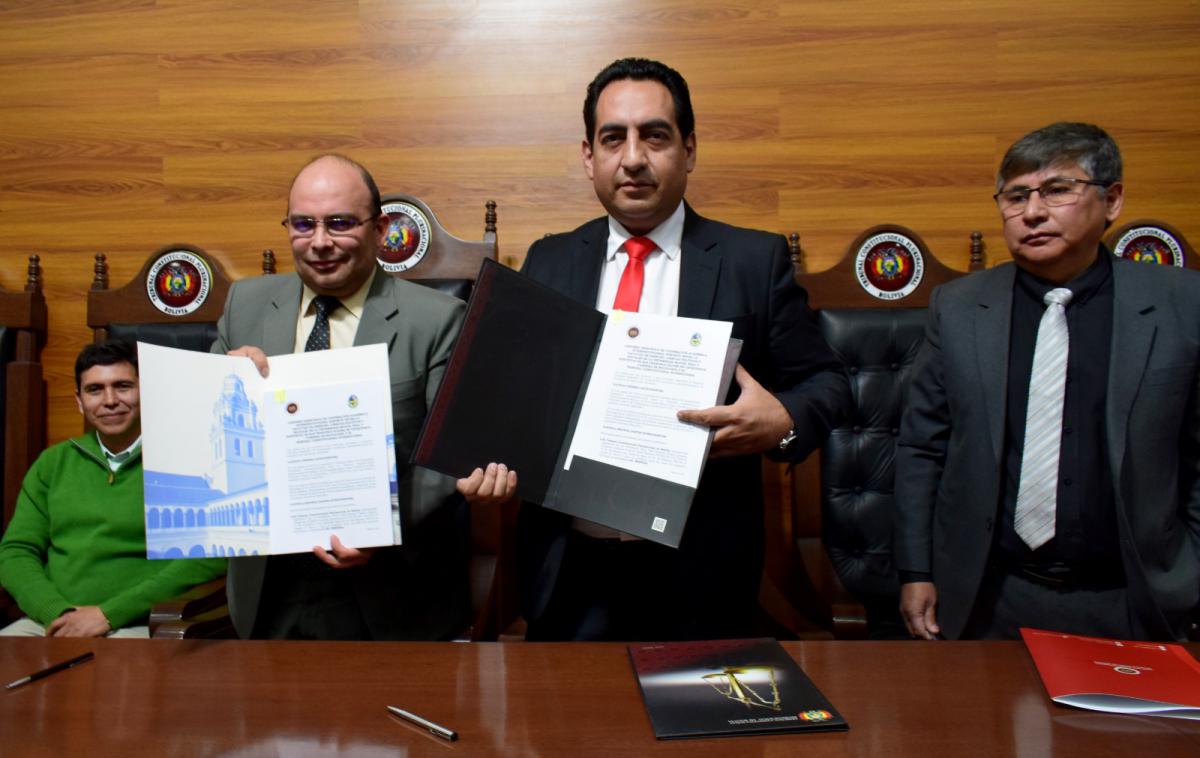 El Tribunal Constitucional Plurinacional de Bolivia (TCP) y la Carrera de Sociología de la Facultad de Derecho, Ciencias Políticas y Sociales de la Universidad Mayor, Real y Pontificia de San Francisco Xavier de Chuquisaca, suscribieron un Convenio de Cooperación interinstitucional, con el objetivo de coadyuvar a la formación de los estudiantes para la realización de prácticas laborales y el desarrollo de actividades académicas.