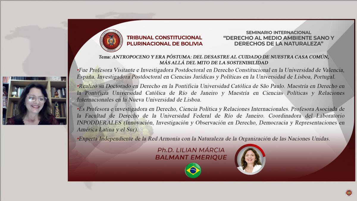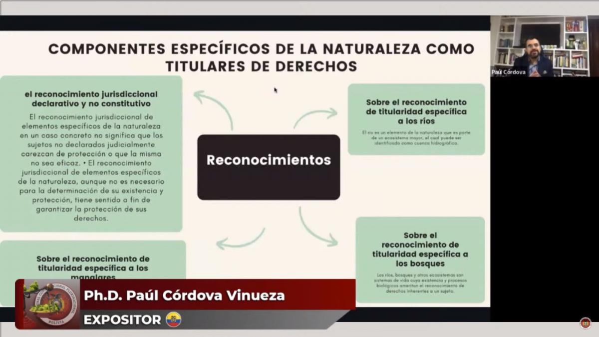 Asimismo, desde Brasil, la Profesora de la Universidad Federal de Río de Janeiro, Ph.D. Lilian Márcia Balmant Emerique, analizó sobre el “Antropoceno y Era Póstuma: Del Desastre al Cuidado de Nuestra Casa Común, más allá del Mito de la Sostenibilidad”; y el Profesor de la Universidad Central de Ecuador, Ph.D. Paúl Córdova Vinueza, se refirió al “Desarrollo Jurisprudencial de los Derechos de la Naturaleza en las Decisiones de la Corte Constitucional de Ecuador”.