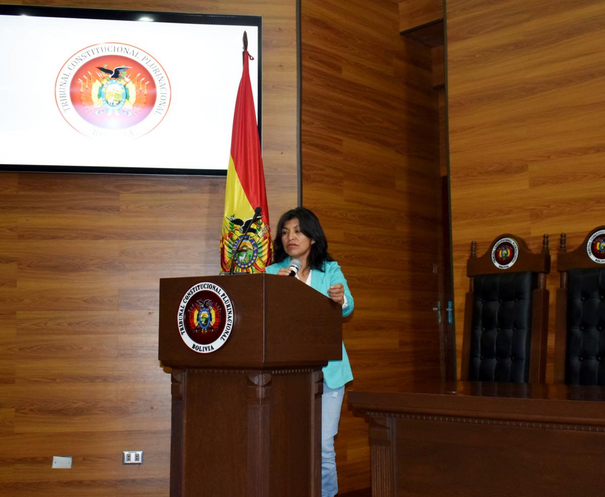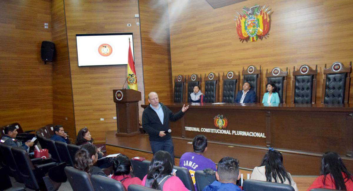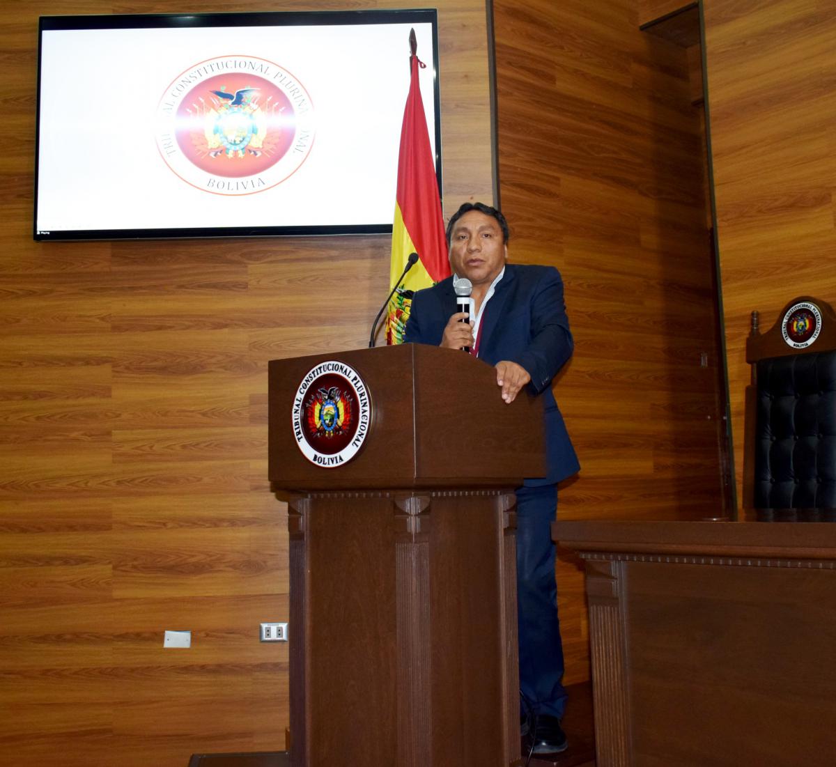 José Rodolfo Sáenz Paz, abogado Asistente de Control Normativo, expuso sobre las funciones encomendadas al TCP por la Constitución Política del Estado (CPE) explicando las acciones a través de las cuales se materializa el mandato de velar por la supremacía de la Constitución, el control de constitucionalidad, el respeto, control de competencias, la vigencia de los derechos y garantías constitucionales.