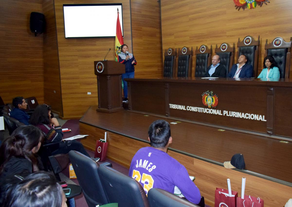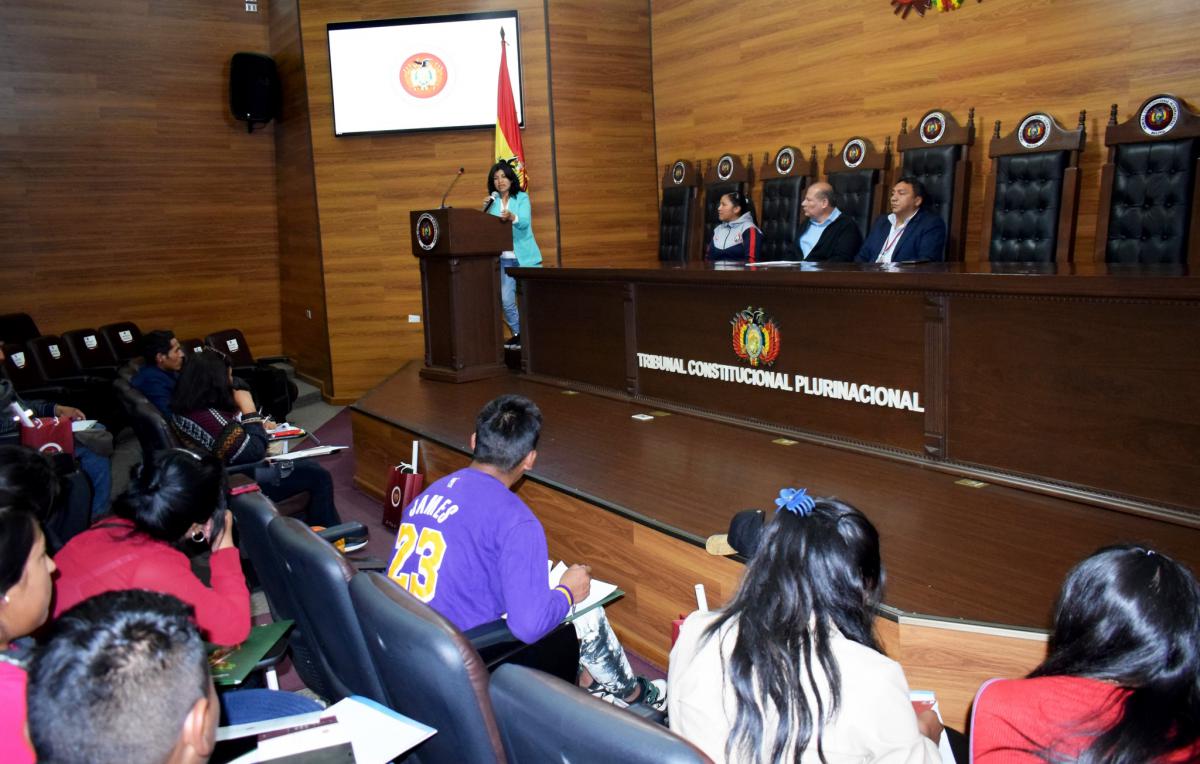 La mañana de hoy, una delegación de estudiantes de la Carrera de Derecho de la Universidad Nacional Siglo XX de la sub sede Colquiri del Centro Minero del Departamento de La Paz, visitaron las instalaciones del Tribunal Constitucional Plurinacional de Bolivia (TCP), donde participaron de un conversatorio denominado, “Competencias y Atribuciones del TCP”, organizado por el despacho de la Magistrada MSc. Brigida Celia Vargas Barañado.