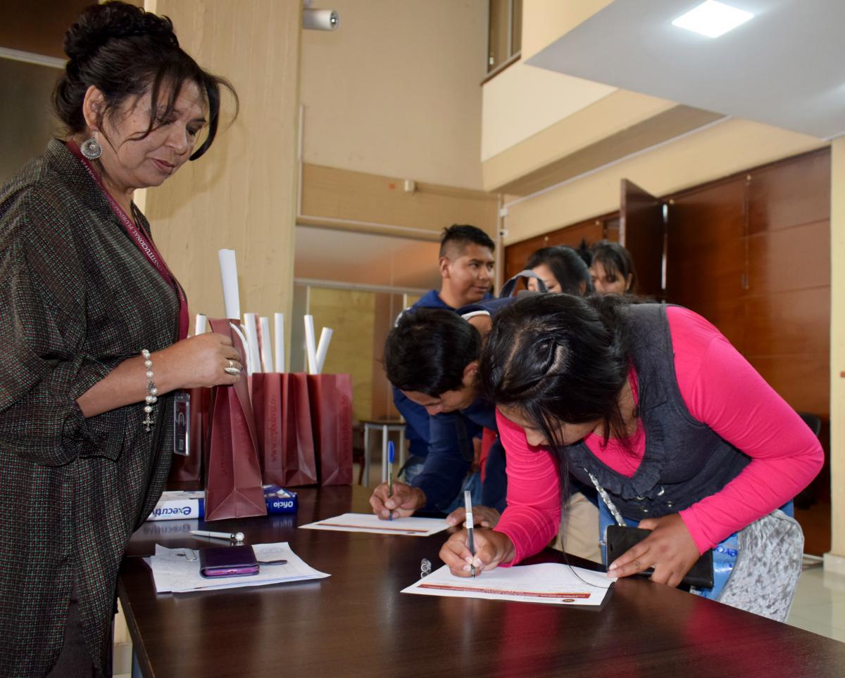 Asimismo, la representante de los estudiantes Nilda Condori Mamani, agradeció a nombre de todos sus compañeros, manifestando sentirse sumamente dichosos por la predisposición del TCP de abrir sus puertas a las Universidades alejadas que recurren en busca de información que complemente el proceso de aprendizaje recibido en las aulas, así como por el material institucional que se les fue otorgado al finalizar el evento.