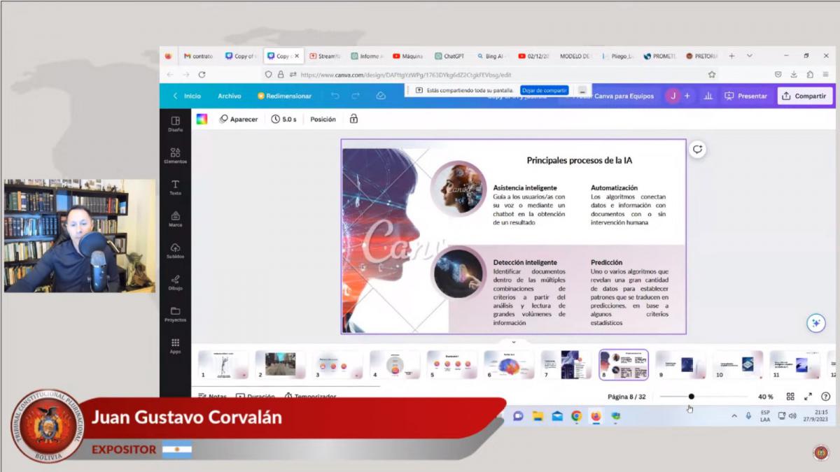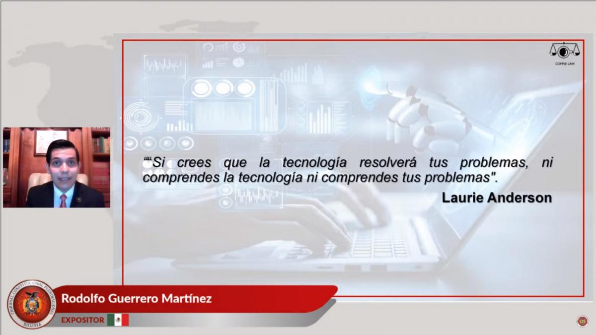 Formaron parte de la actividad desarrollada el miércoles 27 de septiembre en el Aula Virtual del TCP, el Principal CEO de Guerra Abogados Estudio Jurídico, Jorge Iván Guerra Fuentes (Colombia), con el tema “Los Derechos Fundamentales en la Internet desde la Visión del Metaderecho”; el Director de IALAB de la Universidad de Buenos Aires, Juan Gustavo Corvalán (Argentina), con la exposición: “El Impacto de la Inteligencia Artificial en la Justicia de Latinoamérica”; y el Presidente del Tribunal Constitucional Plurinacional, Paul Enrique Franco Zamora (Bolivia), con la ponencia denominada “Transformación Digital y Derechos Humanos: Hacia la Construcción de un Constitucionalismo Digital”.
