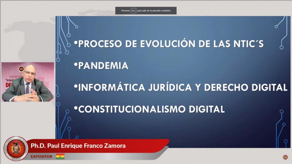 Con el propósito de analizar y debatir sobre aspectos inherentes al derecho cibernético, el derecho informático, la analítica de la información, ciberseguridad y metaverso, el Tribunal Constitucional Plurinacional de Bolivia (TCP), llevó adelante la primera jornada del Seminario Internacional: “Inteligencia Artificial, Derecho Digital y Acceso a la Justicia”, con la participación de reconocidos expositores de Argentina, Bolivia, Colombia, Costa Rica, México y Perú.
