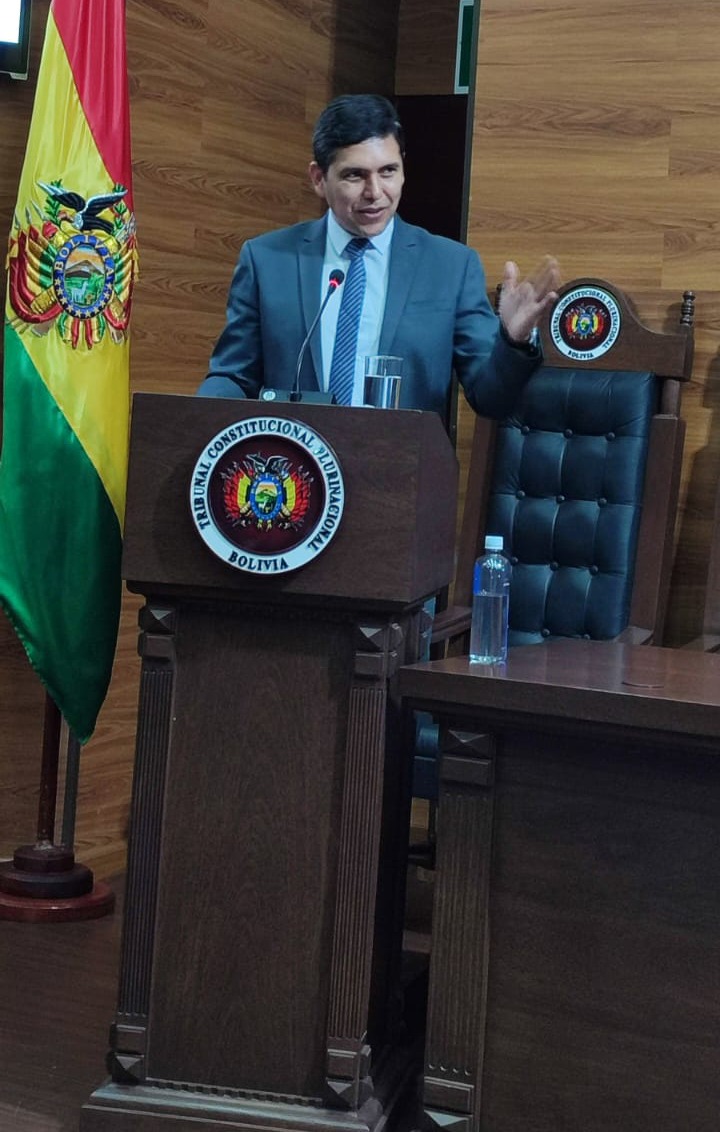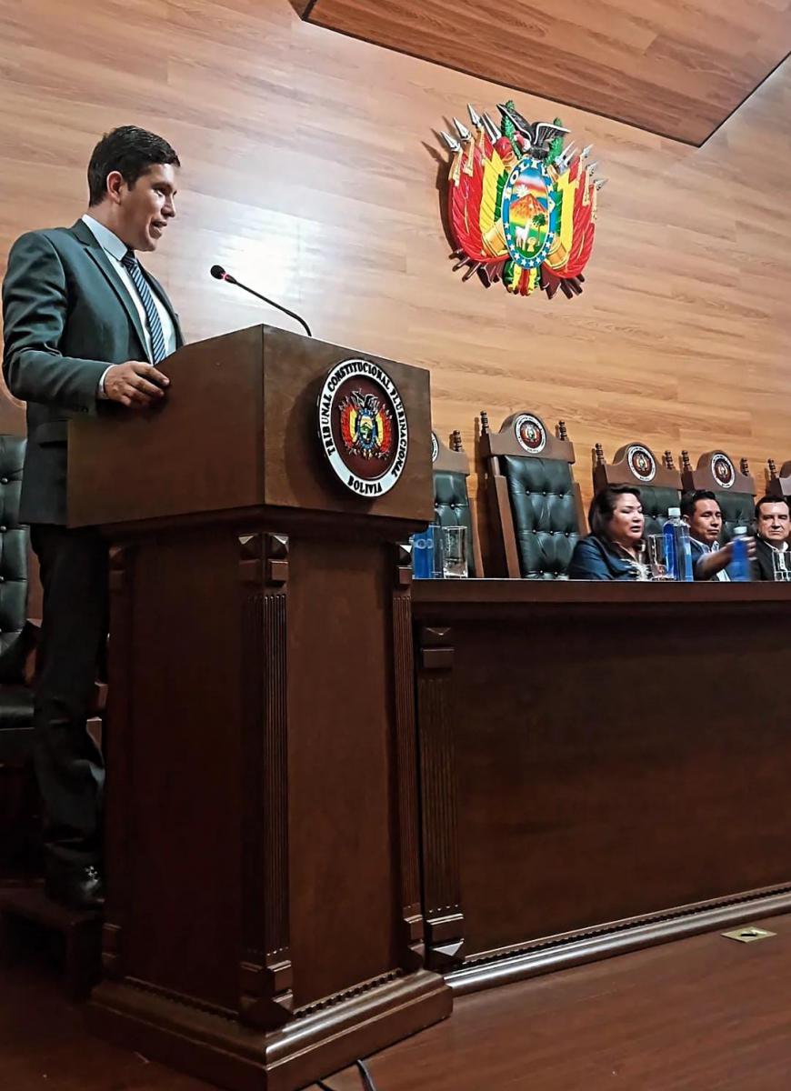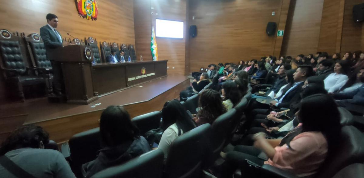 Por su parte, el Asistente de Acción Tutelar del TCP, Victor Laredo Muruchi, realizó una introducción al Debido Proceso, explicando a las y los universitarios de la UPEA sobre la importancia del mismo.