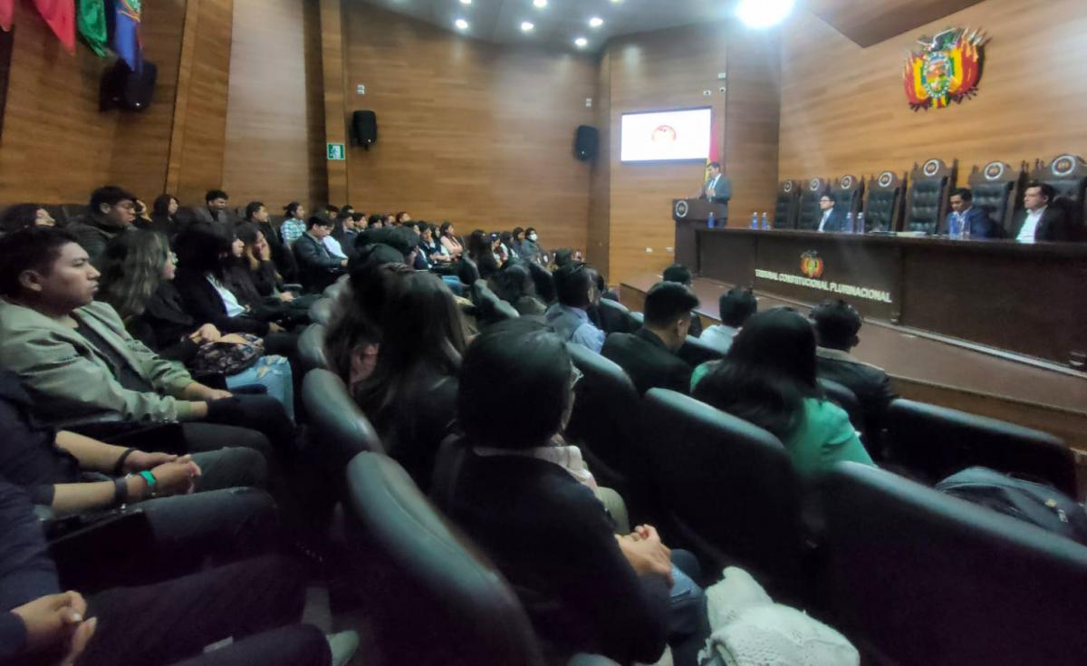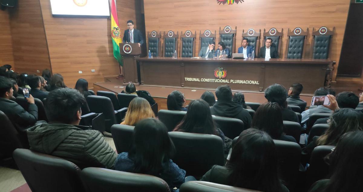 A su vez, la Magistrada MSc. Brígida Vargas, agradeció el interés de las y los universitarios por conocer el TCP, felicitando el entusiasmo demostrado por querer aprender más, a tiempo de explicar que la institución tiene la atribución de conocer y resolver la revisión de acciones de: Libertad, de Amparo Constitucional, de Protección de Privacidad, Acción Popular y de Cumplimiento que se resuelven en primera instancia en las Salas Constitucionales.