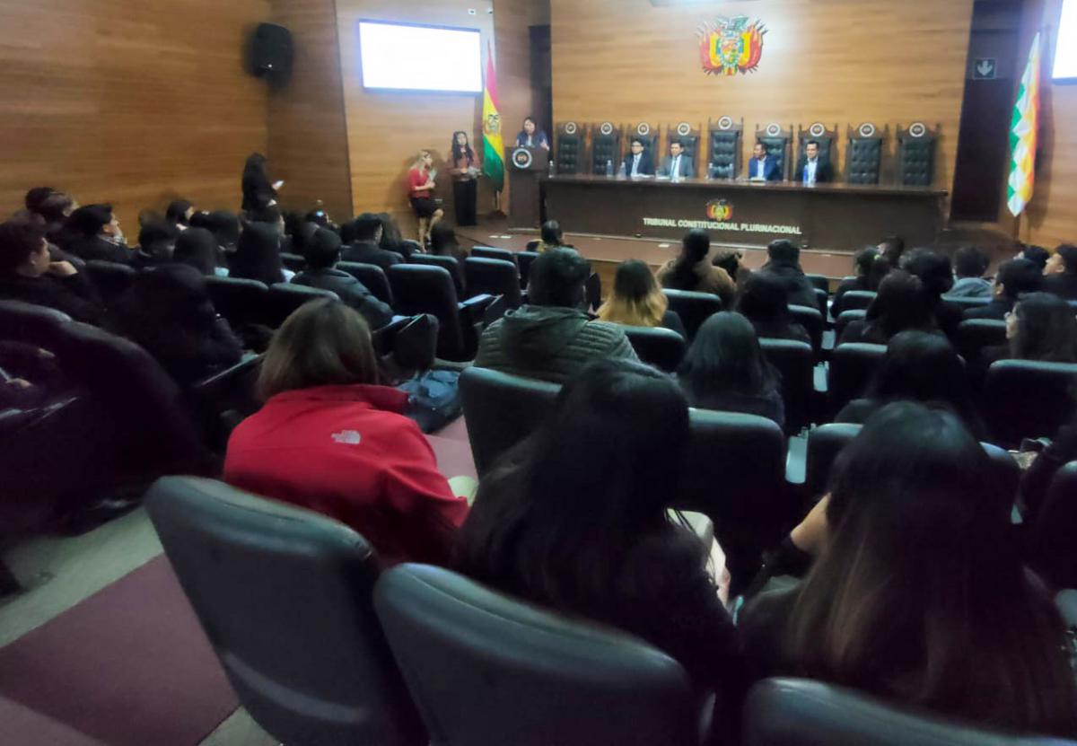 Estudiantes de Derecho de la Universidad Pública de El Alto (UPEA), visitaron el Tribunal Constitucional Plurinacional de Bolivia (TCP), donde fueron recibidos por el Magistrados que forman parte de la Sala Segunda, MSc. Carlos Alberto Calderón Medrano, electo por el Departamento de Santa Cruz, y la MSc. Brigida Vargas Barañado, electa por el Departamento de La Paz.