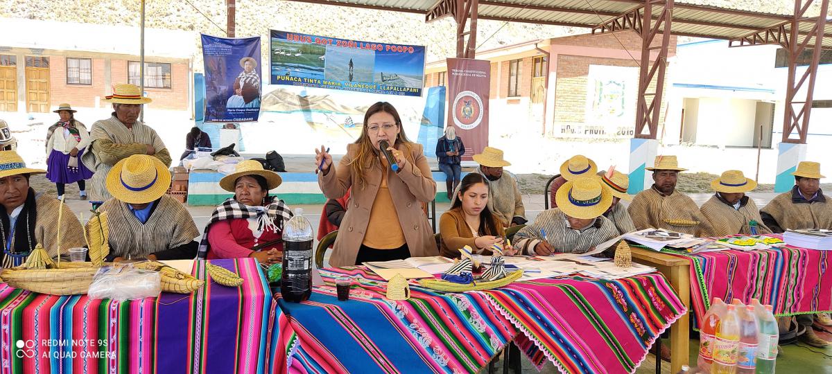 La actividad contó con una masiva participación de las Autoridades Indígena Originaria Campesinas de la Nación Uru Murato del lago Poopó (Puñaca Tinta María, Vilañeque y Llapallapani), quienes a inicio realizaron un acto ritual, donde el Tata Florencio Inocente Aguilar, Mallku Q’ota de los Urus brindó la bienvenida a la Magistrada del Tribunal Constitucional Plurinacional de Bolivia – TCP, MSc. Georgina Amusquivar Moller, así como a las comunarias y comunarios asistentes.