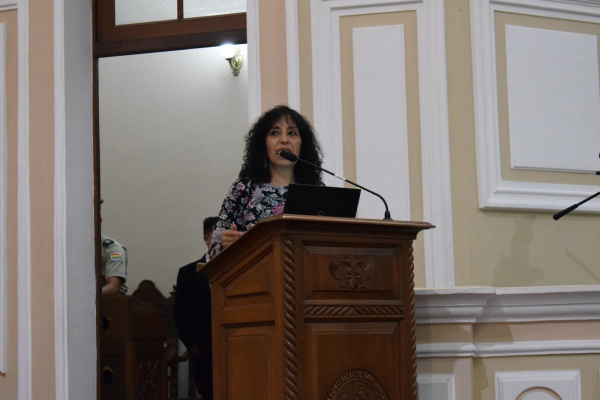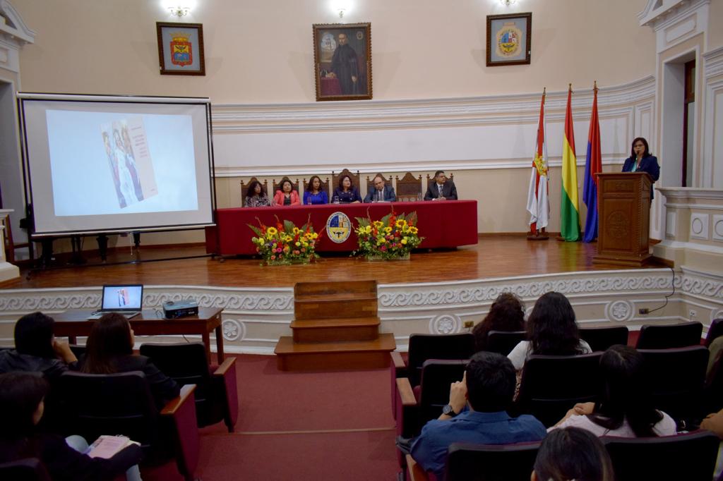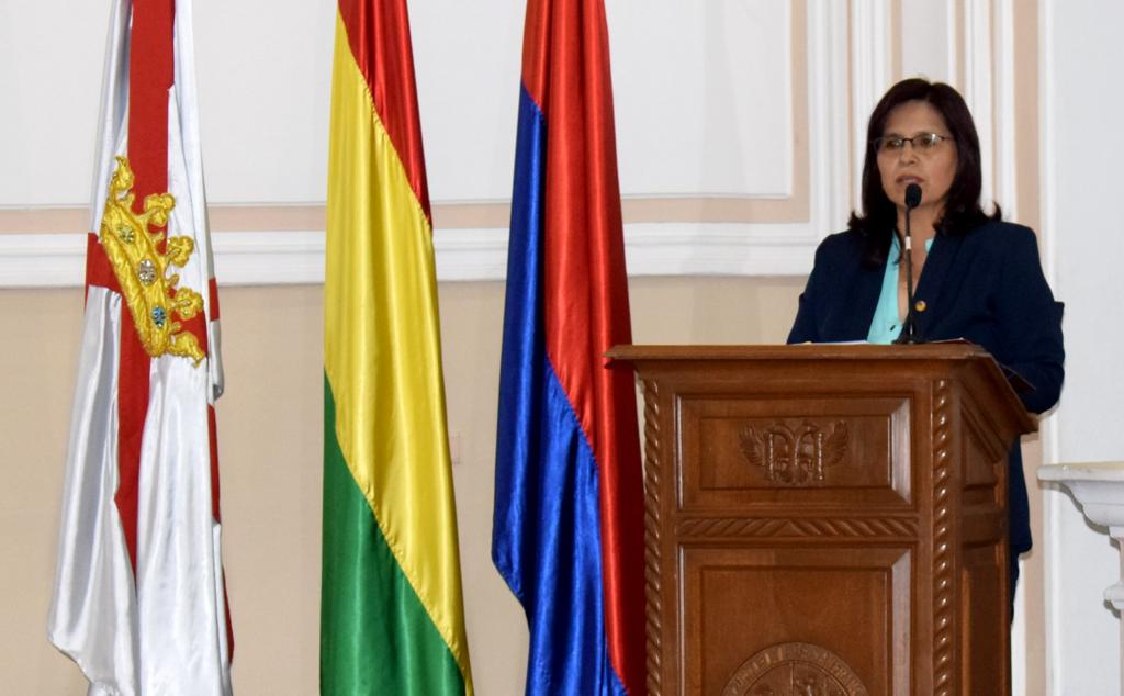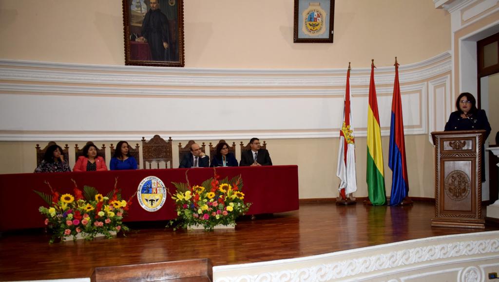 A inicio de la actividad, la Magistrada Gallardo manifestó su agradecimiento al Ilustre Colegio de Abogados de Chuquisaca, a la cooperación interinstitucional y a las instancias nacionales e internacionales por el permanente acompañamiento a cada una de las acciones realizadas para la protección de los derechos de las mujeres.