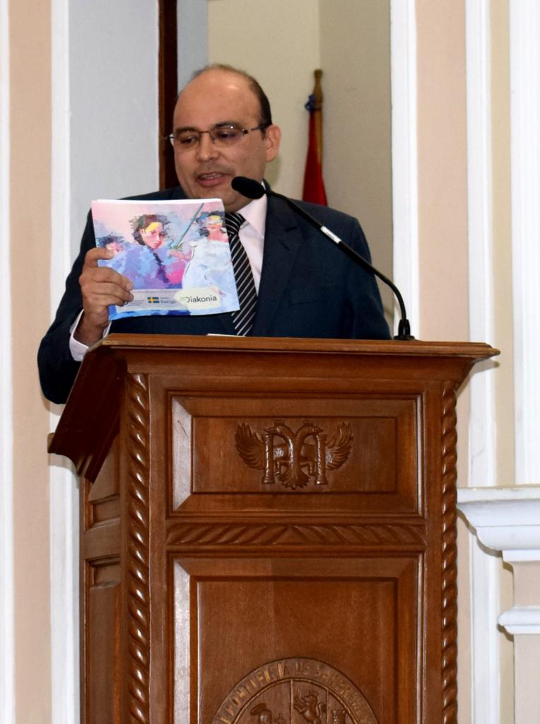Acompañaron el acto desarrollado en el Paraninfo Universitario de la ciudad de Sucre, la Presidenta del Tribunal Agroambiental, MSc. María Tereza Garrón; la Decana del Consejo de la Magistratura, Dra. Mirtha Meneses; el Presidente del Ilustre Colegio de Abogados de Chuquisaca, Dr. Juan Pablo Cervantes; la Representante de Diakonía, Lic. Patricia Tellería; entre otros invitados especiales.