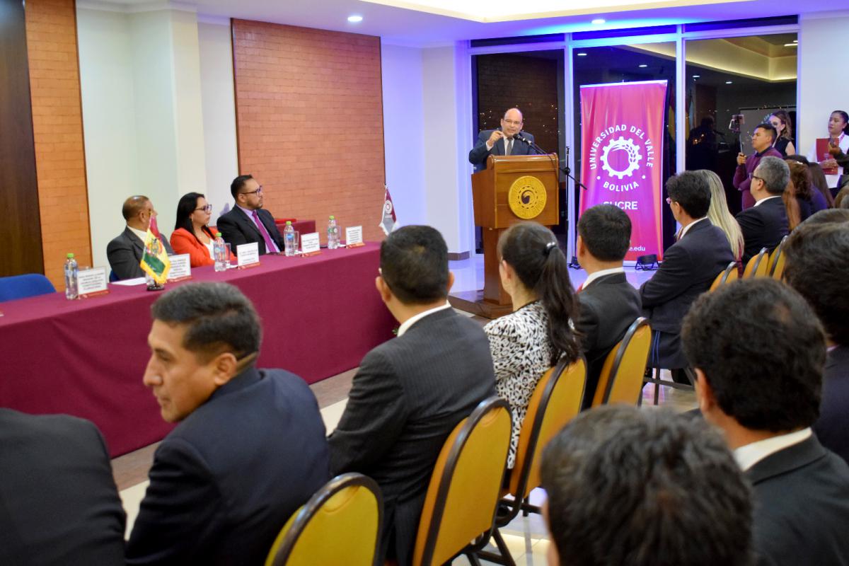 A invitación del Vicerrector de la Universidad Privada del Valle (Univalle) Sede Sucre, MBA. Carlos Luis Torricos Mérida, el Presidente del Tribunal Constitucional Plurinacional de Bolivia (TCP), Ph.D. Paul Enrique Franco Zamora, participó esta jornada en el acto de conmemoración de los 35 años de trayectoria académica de la Casa Superior de Estudios especializada en la formación profesional en pregrado y postgrado.