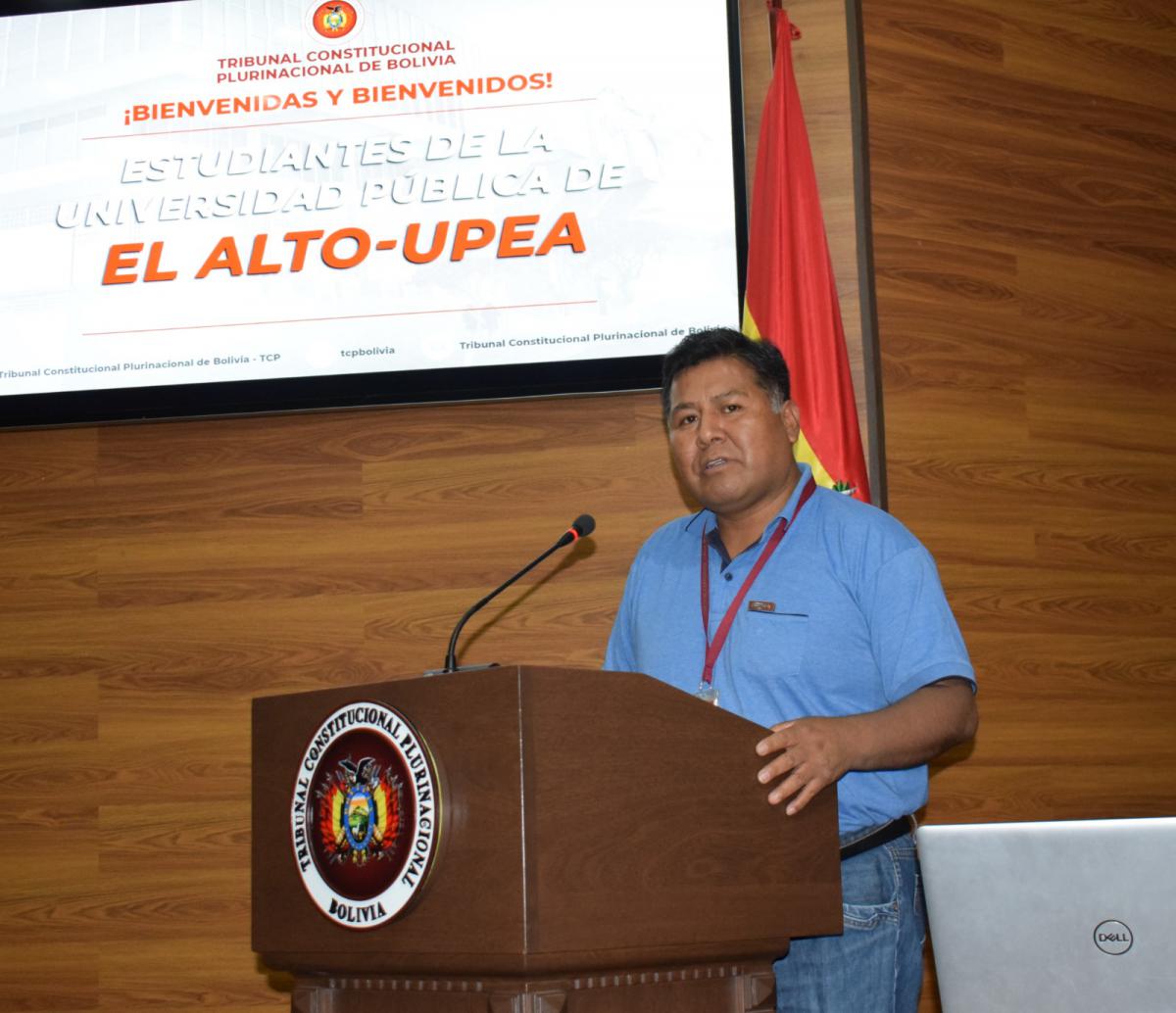 La Magistrada del Tribunal Constitucional Plurinacional de Bolivia (TCP), MSc. Brigida Celia Vargas Barañado, recibió a más de 70 estudiantes de la Universidad Pública de El Alto (UPEA) en el Salón de Honor de la Entidad, donde junto a su equipo de Sala Segunda realizó un taller denominado: “Acceso a la Jurisdicción Constitucional para la protección de los derechos de la Madre Tierra”.